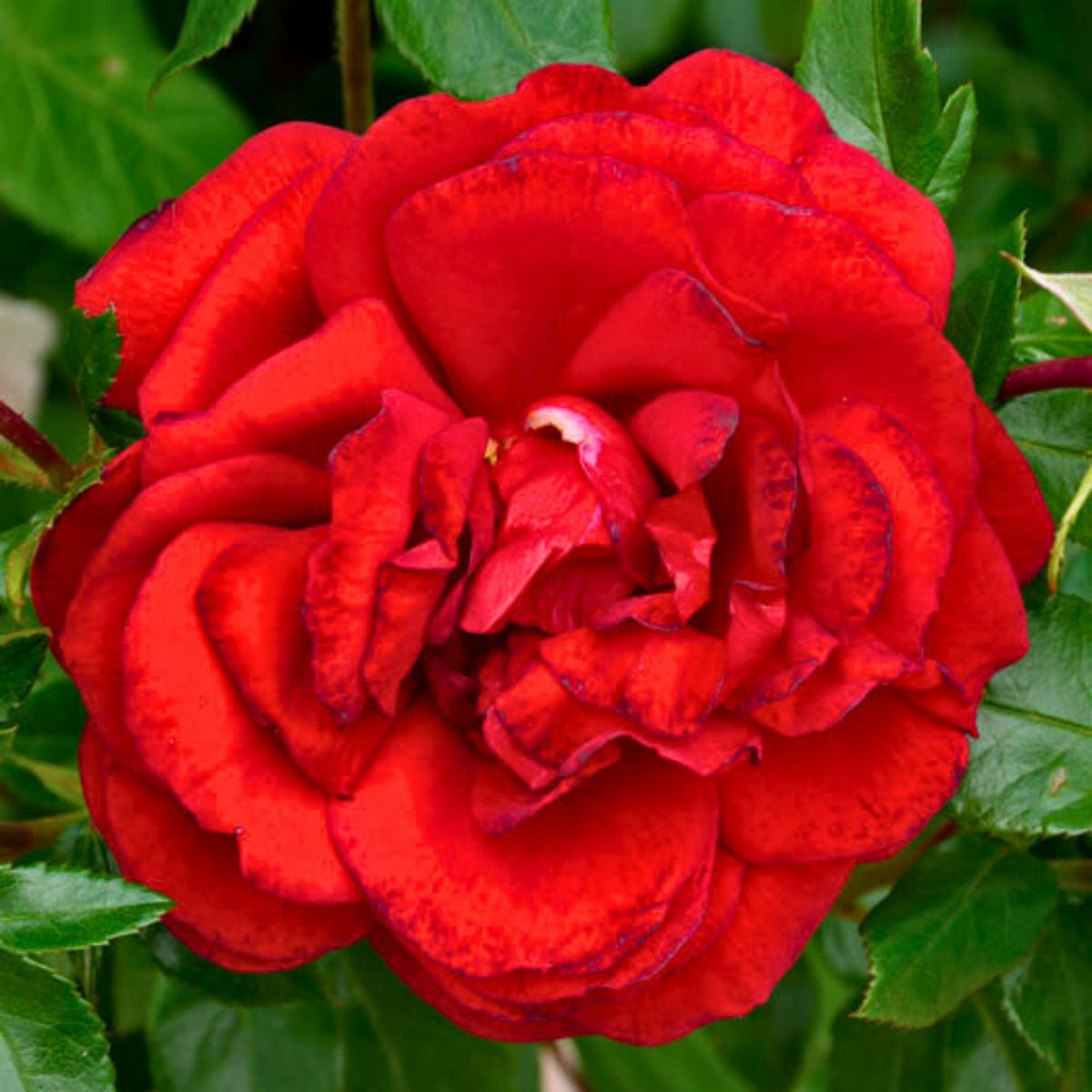 Róża rabatowa Jugendliebe dorasta do 80cm wysokości i 40m szerokości. Kwiaty ma pełne, o barwie intensywnej czerwieni i średnicy 10m. Róża ta silnie się krzewi, o pionowym pokroju, powtarza kwitnienie.