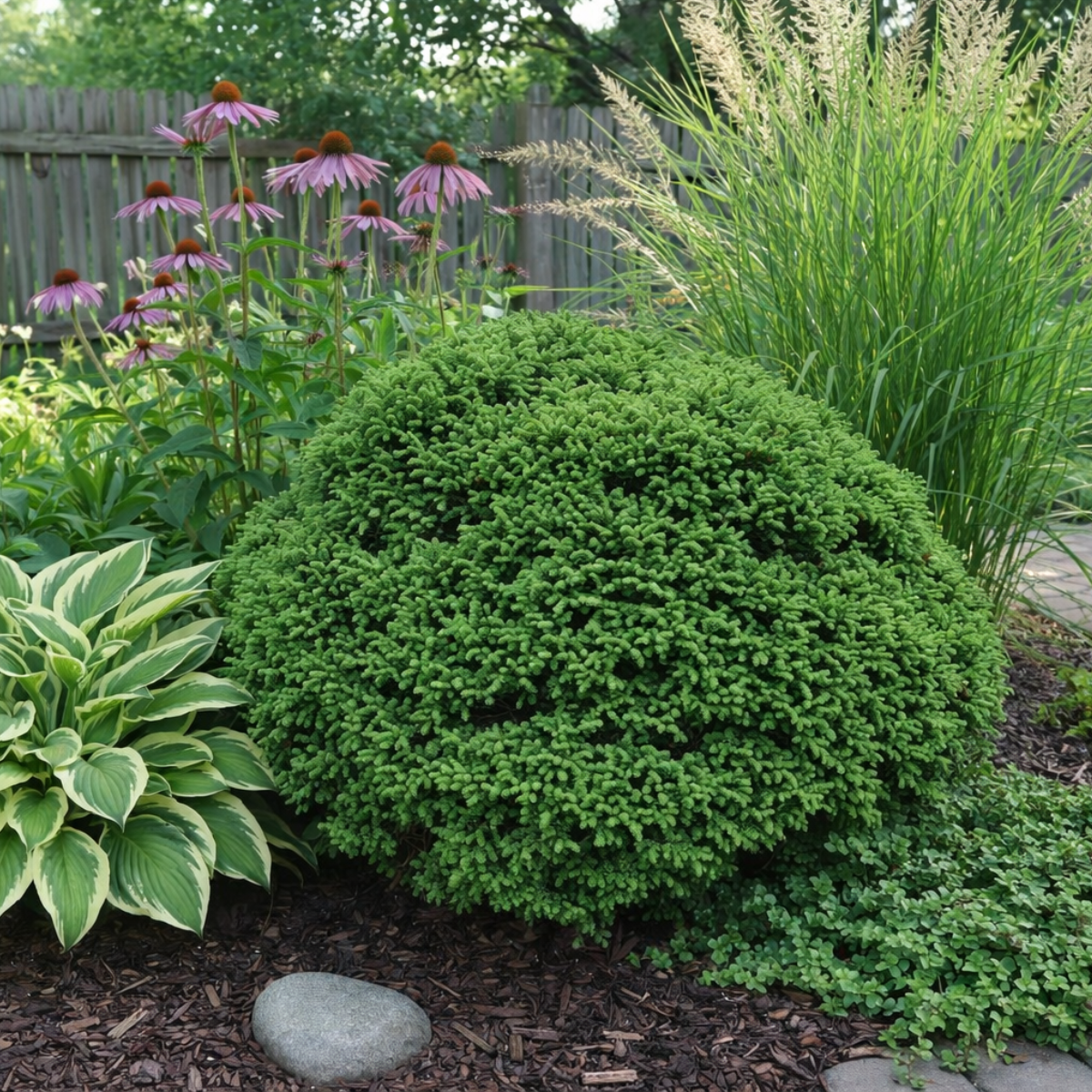 Ciekawostka: Świerk Gregoryana jest często porównywany do odmiany ‘Echiniformis’, jednak wyróżnia się jeszcze gęstszą strukturą i bardziej nieregularnym, naturalnym pokrojem.