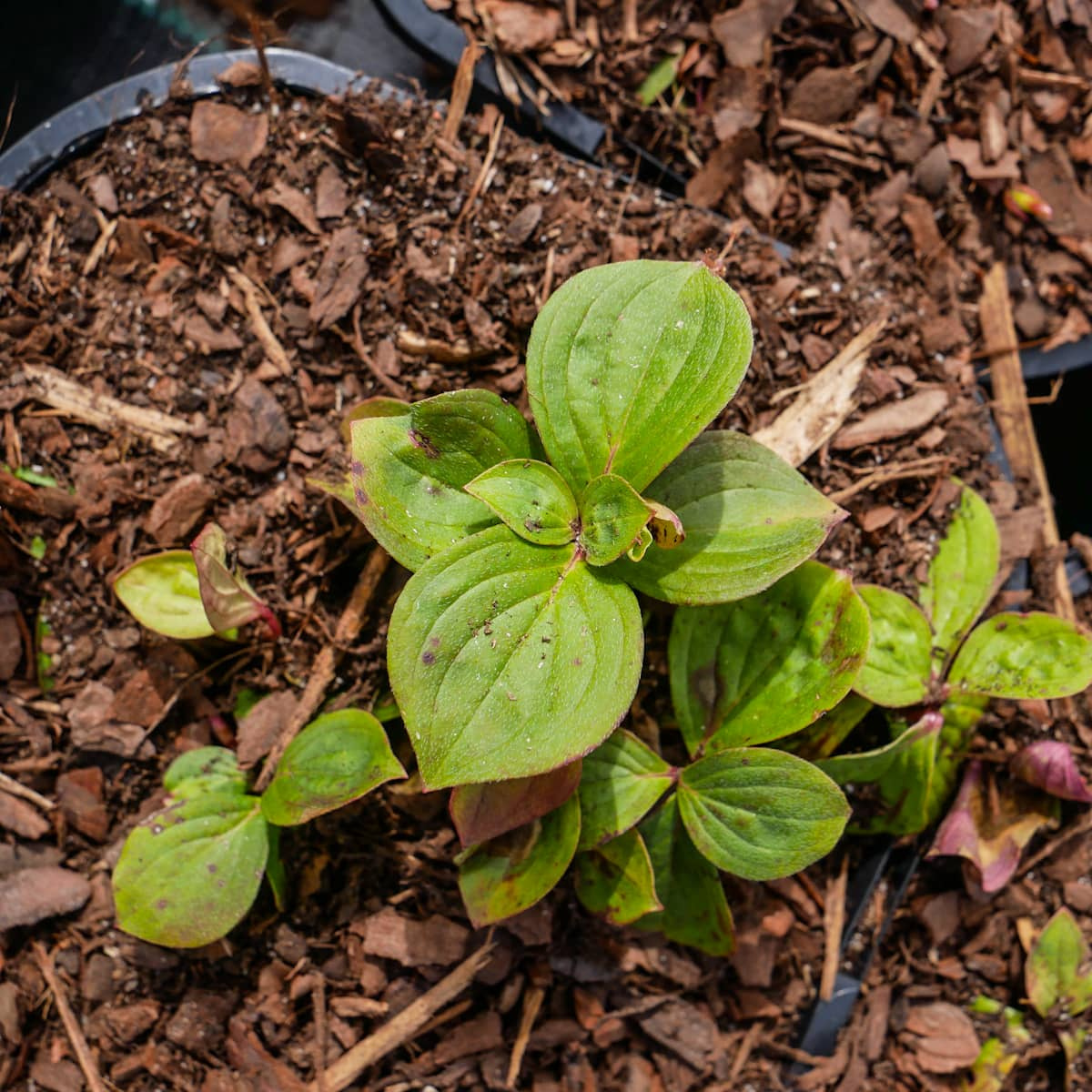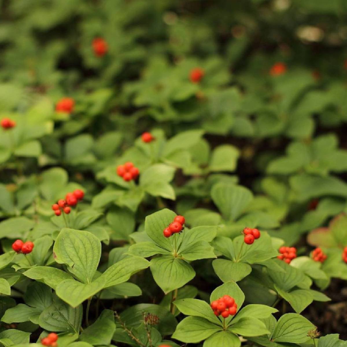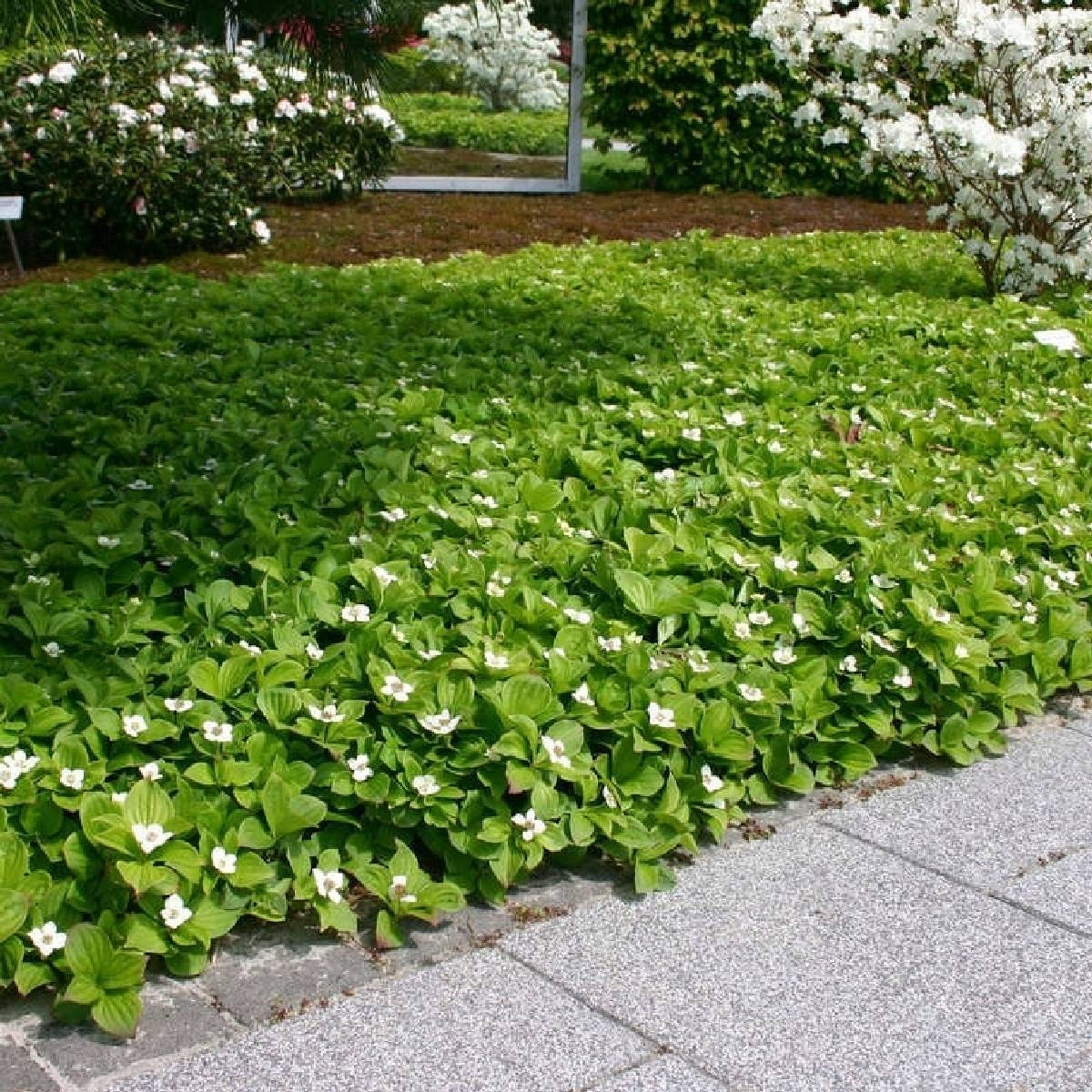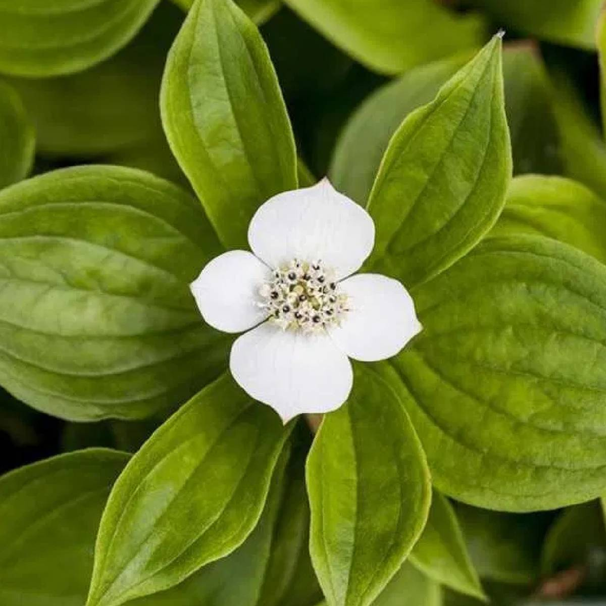 Dereń kanadyjski (Cornus canadensis) to wyjątkowo ciekawa roślina o karłowym i płożącym pokroju, która w ogrodzie tworzy efekt gęstych, zielonych dywanów. Jego tempo wzrostu jest umiarkowane, ale roślina dobrze się rozrasta dzięki podziemnym rozłogom, dzięki czemu z czasem szczelnie zadarnia większe powierzchnie. Dorasta jedynie do około 10–20 cm wysokości, dlatego nie dominuje nad innymi roślinami, ale doskonale podkreśla kompozycje i nadaje im naturalnego charakteru. Sadzonki derenia tej odmiany to idealny wybór do miejsc, w których liczy się delikatny efekt wizualny i jednocześnie trwałość nasadzeń. Sadzonki krzewów liściastych derenia kanadyjskiego świetnie sprawdzają się w roli roślin okrywowych.