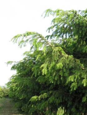 Igły ciemnozielone, ułożone grzebieniasto na cienkich pędach.