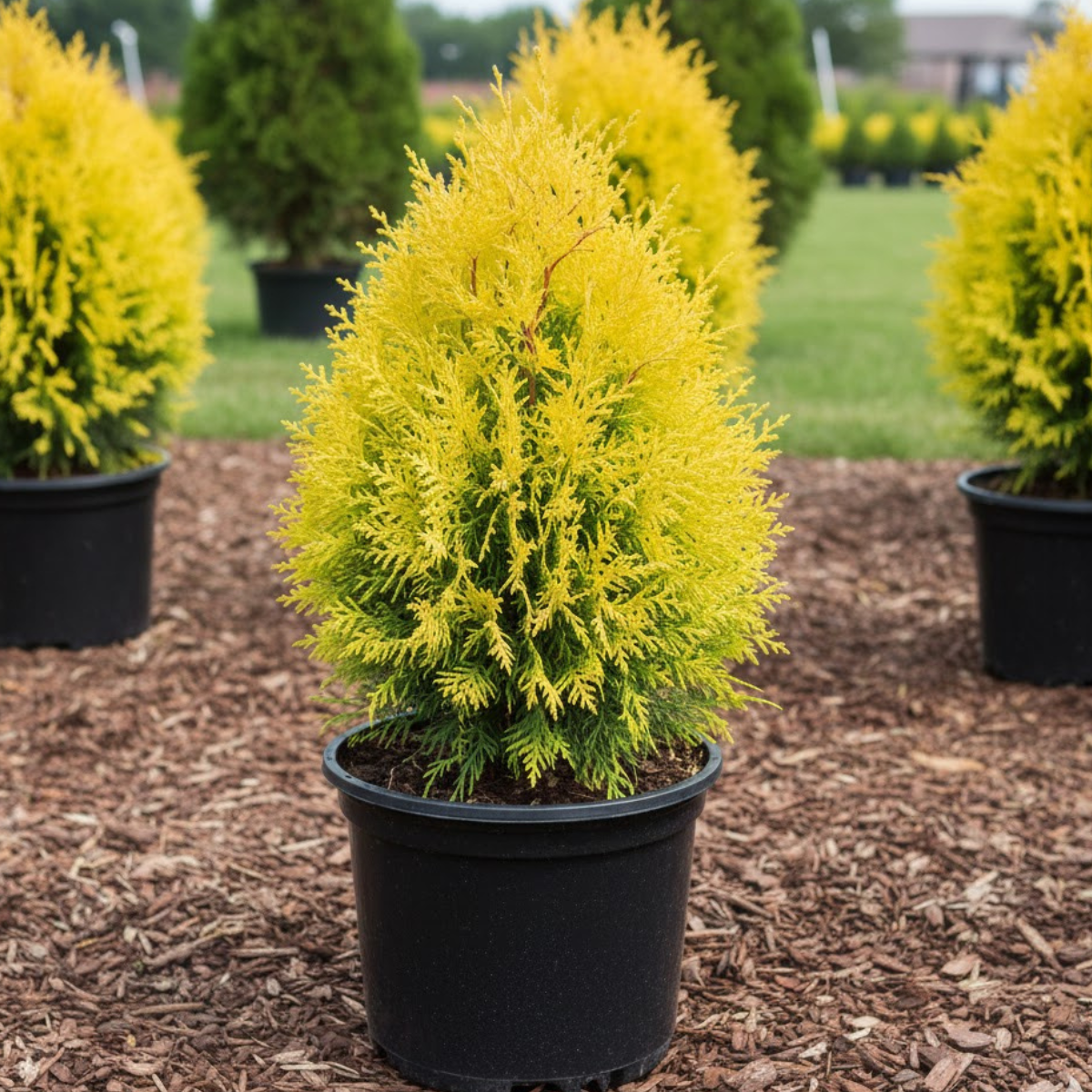 ‘Tiger Gold’ jest jedną z tych odmian tui, które nie tracą intensywnego koloru zimą – wręcz przeciwnie, w chłodniejszych miesiącach prezentuje najciekawsze zestawienie barw żółci, zieleni i czerwieni. To sprawia, że ogród pozostaje atrakcyjny także poza sezonem wegetacyjnym. Idealna do ogrodów przydomowych, reprezentacyjnych nasadzeń oraz formowanych żywopłotów.