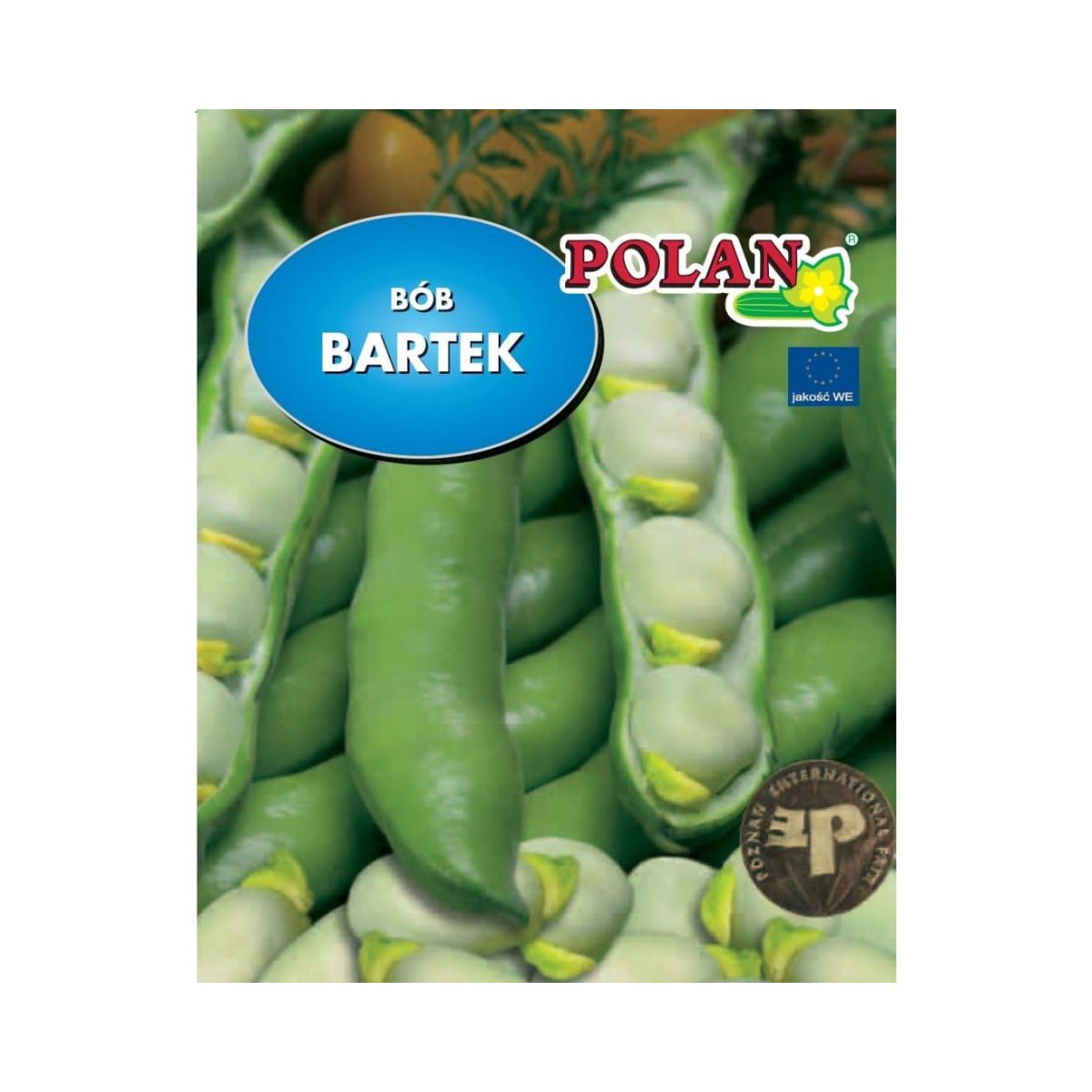 Bób Bartek to wczesna odmiana przeznaczona do wcześniejszych upraw. Na łodydze ok. 8-10 strąków z 4-5 dużymi, biało-seledynowymi nasionami bez czarnego znaczka. Masa 1000 świeżych nasion ok. 4 kg.
