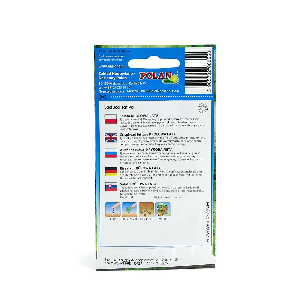 Każda paczka zawiera informację o sposobie uprawy, a także terminie przydatności do siewu.