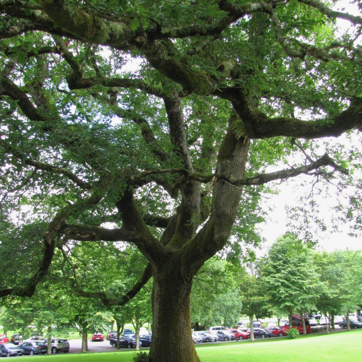 Drzewo o szerokojajowatej koronie, z czasem rozrastające się na szerokość. W naturze osiąga wysokość 25-40 m.