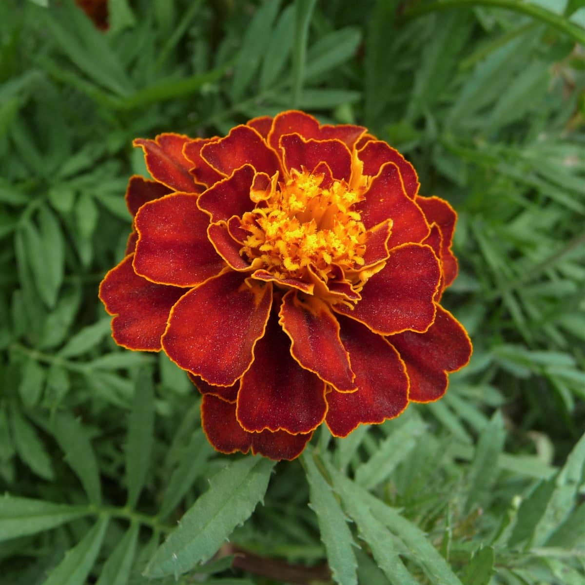 Aksamitka niska to roślina jednoroczna o silnie rozgałęzionych łodygach i pierzastodzielnych, piłkowanych liściach.