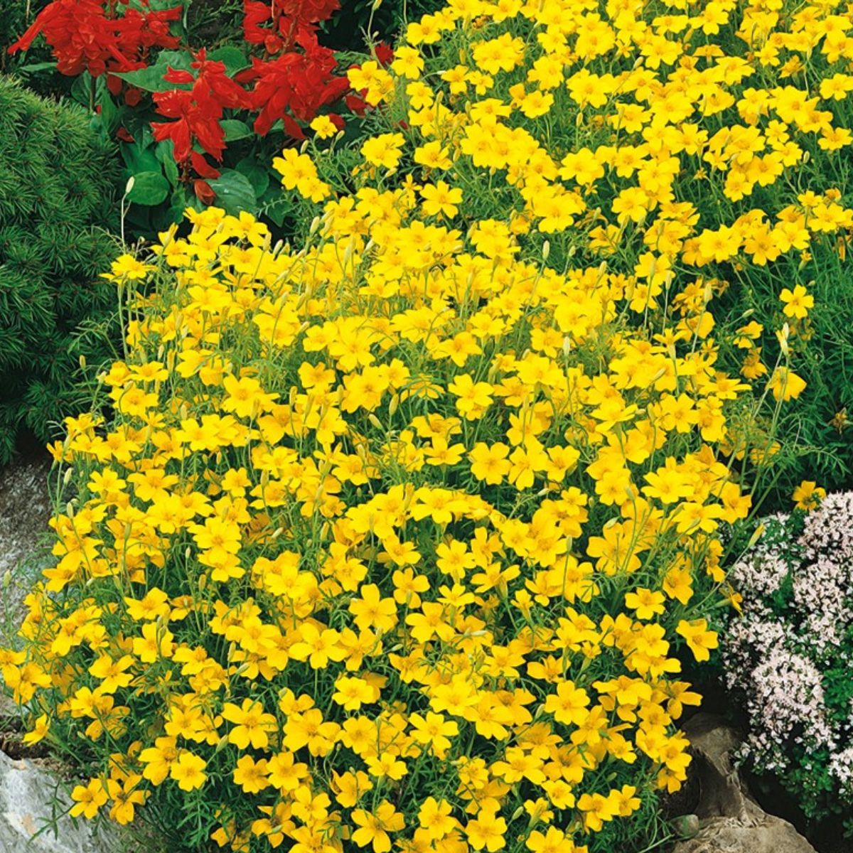 Można ją łączyć z innymi kwiatami sezonowymi wysiewanymi z nasion.