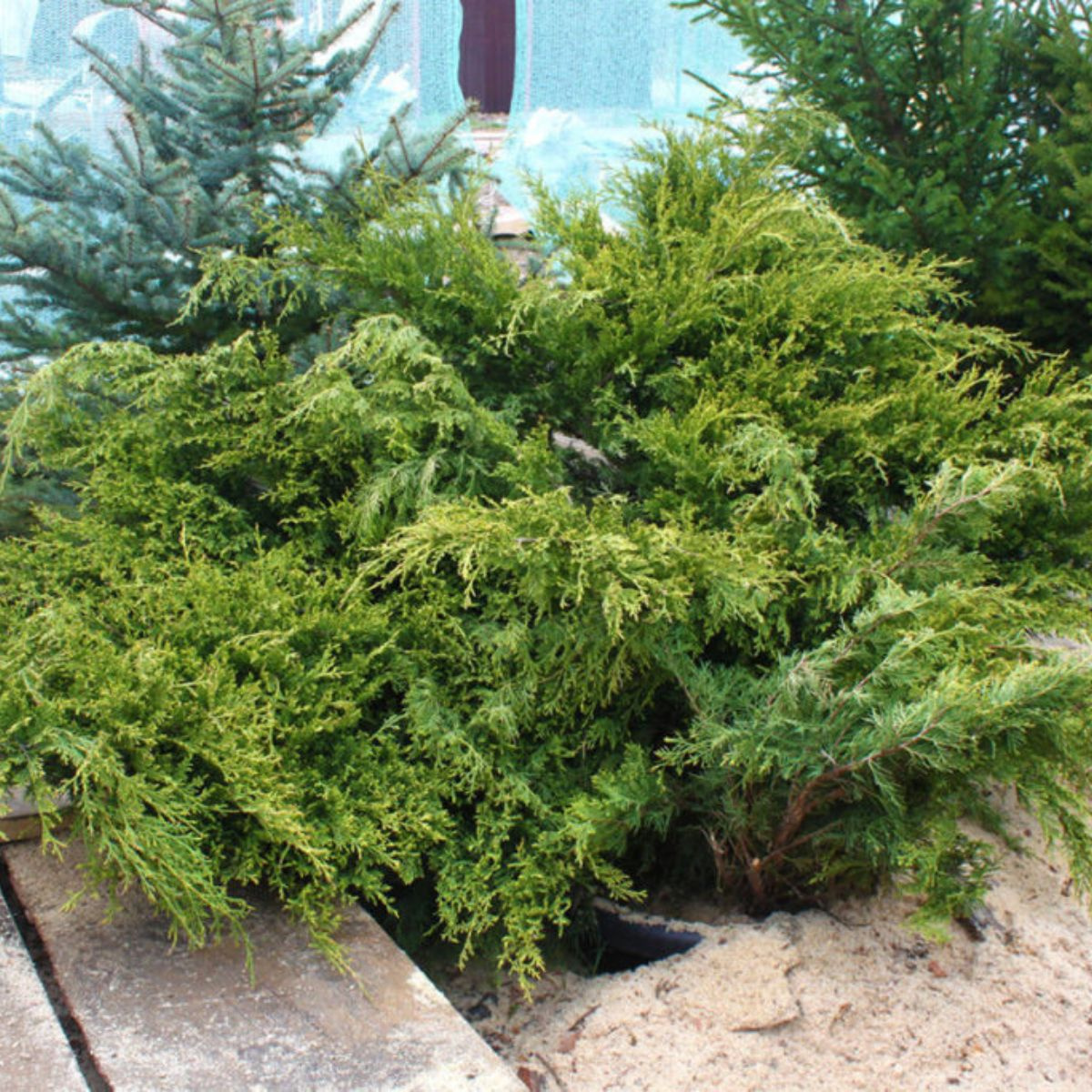 Iglasty krzew okrywowy. Docelowo osiąga 50cm wys. i 2-3m szer. Młode egzemplarze przypominają jałowiec płożący, mają wyprostowane, miotełkowato rozdzielone gałązki Liście przeważnie w formie łusek.