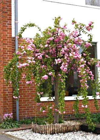 Wiśnia piłkowana Kiku - Shidare Zakura jest to jedna z najładniejszych odmian wiśni ozdobnych. Jest nie wysokie drzewo o zwisających pędach. Korona jest bardzo nieregularna. Dorasta do około 3m wysokości i 4m szerokości.