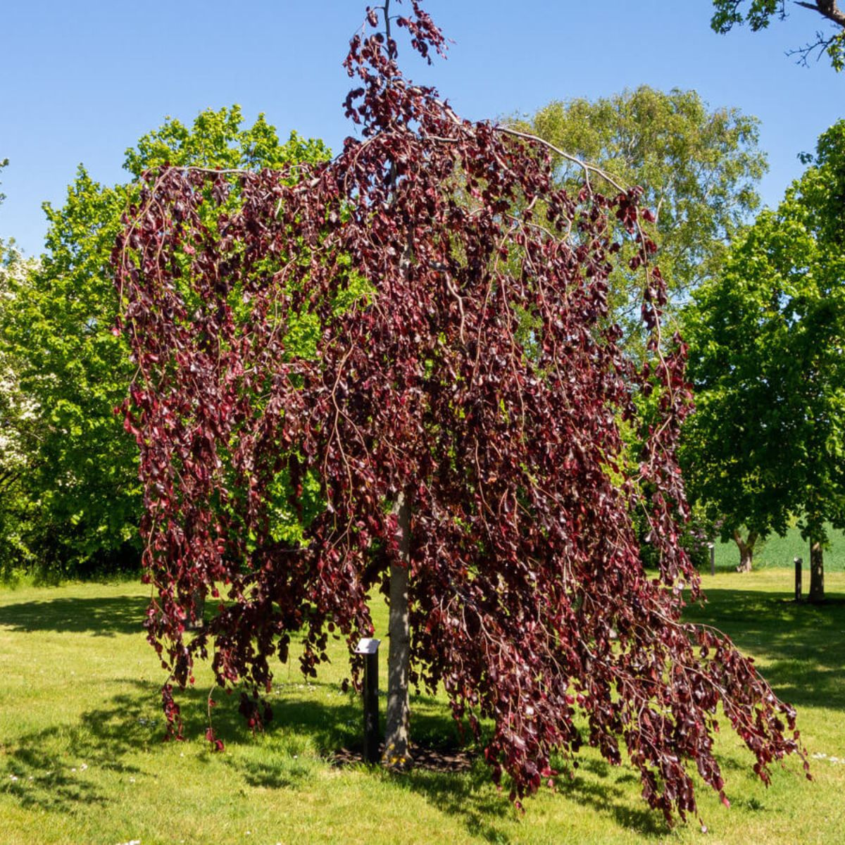 Buk pospolity Purpurea Pendula – elegancka, zwisająca forma do ogrodu