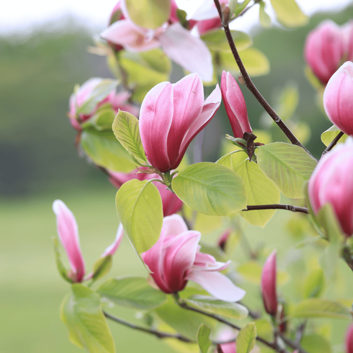 Magnolia Cameo to perełka wśród odmian magnolii, ceniona za niezwykle efektowne kwitnienie i wyrafinowany charakter. Dzięki kompaktowemu pokrojowi świetnie sprawdza się zarówno w małych, jak i większych ogrodach. Jest idealnym wyborem jako soliter – sadzona pojedynczo staje się centralnym punktem aranżacji, ale równie dobrze prezentuje się w kompozycjach z innymi drzewami liściastymi.