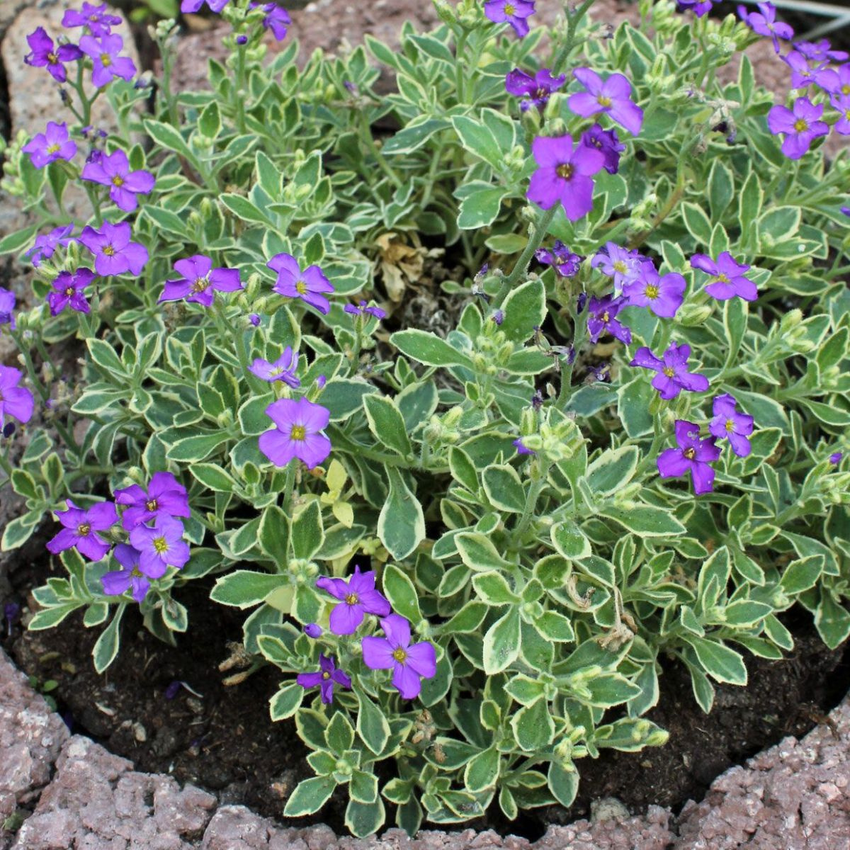 Żagwin ogrodowy Dr. Mules Variegated to wyjątkowa bylina okrywowa, która łączy w sobie piękno fioletowych kwiatów z niezwykle dekoracyjnymi, pstrokatymi liśćmi. Jej niskie, zwarte kobierce osiągają wysokość 10-15 cm, a od kwietnia do maja zdobią je liczne, intensywnie fioletowe kwiaty. Liście, o szaro-zielonym kolorze z kremowym obrzeżeniem, są ozdobą przez cały rok. Roślina doskonale nadaje się do ogrodów skalnych, na murki kwietne oraz jako obwódka rabat. Sprawdź więcej inspiracji, odwiedzając sadzonki żagwinów.