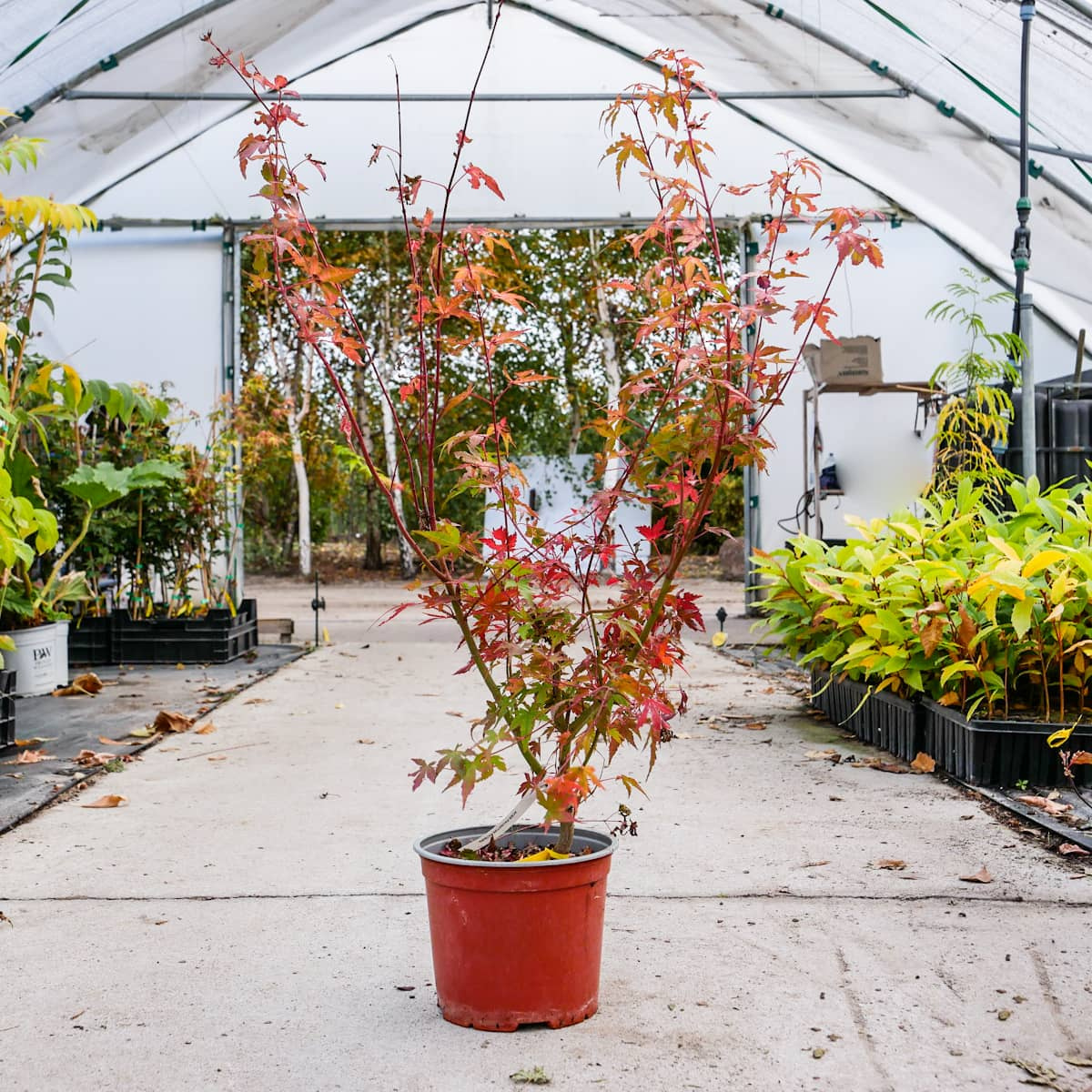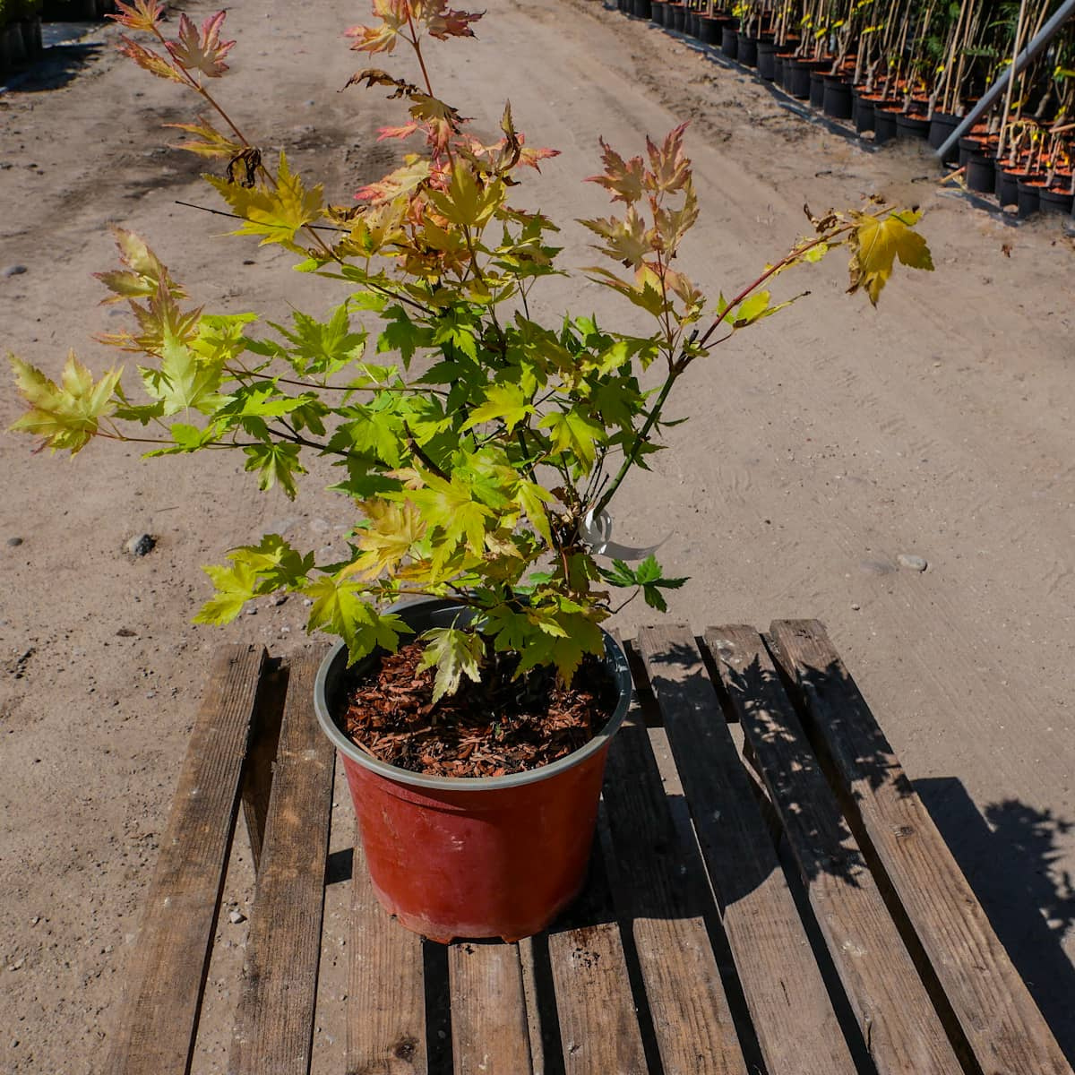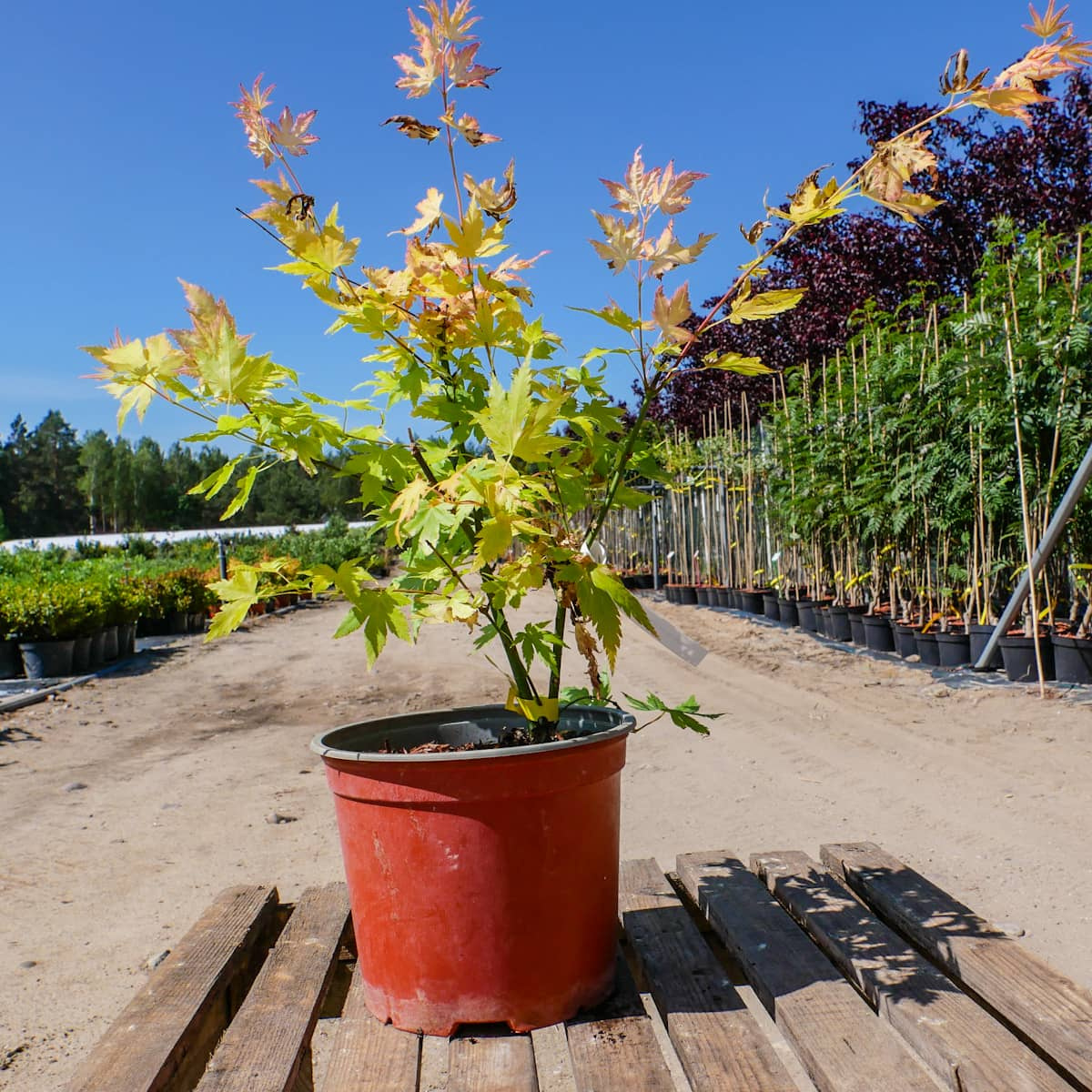 Malowniczy krzew lub małe drzewko. Dorasta do 2m wys. Liście 5-7 klapowe, wachlarzowate, powcinane, zmienne, intensywnie pomarańczowe wiosną i złotożółte latem. Stanowisko słoneczne do częściowo zacienionego, miejsce osłonięte. Udaje się na glebach wilgotnych, przepuszczalnych, lekko kwaśnych. Nie w pełni mrozoodporny, szczególnie młode egzemplarze. Nie toleruje długotrwałych suszy.