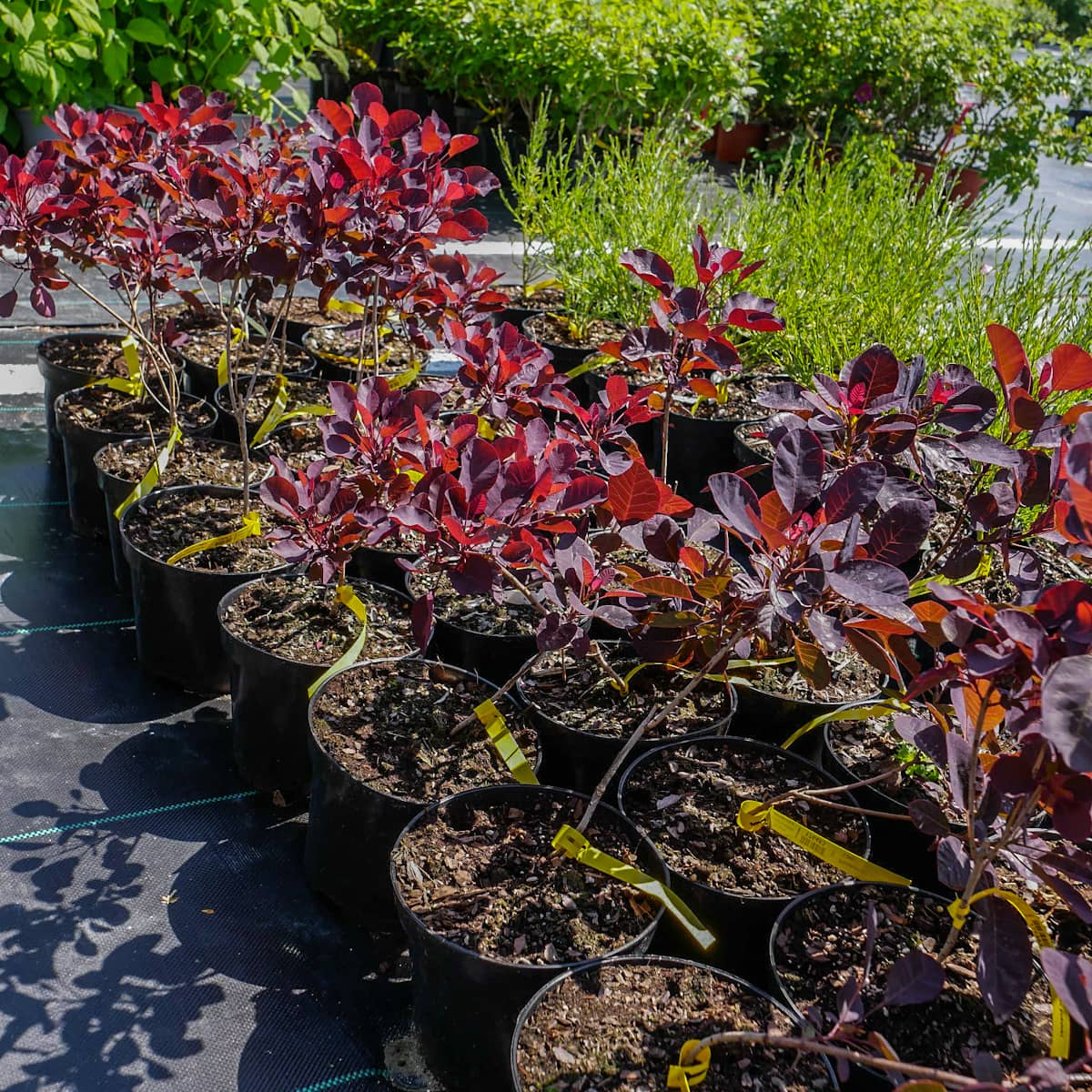 Wolno rosnący, kompaktowy krzew o purpurowych liściach i puszystych, efektownych owocostanach. Dorasta do 1,2 – 1,5 m wysokości. Jest to karłowa wersja odmiany ‘Royal Purple’. Pokrój krzewów jest w zarysie zaokrąglony. Pędy są dosyć krótkie, liście pojedyncze, całobrzegie, odwrotnie jajowate, purpurowe, czasami z różową obwódką. Jesienią liście przebarwiają się na czerwono, pomarańczowo i żółto. Największą ozdobą perukowca są jego początkowe kwiatostany, a potem owocostany. Kwitnienie perukowców odbywa się od końca maja aż do czerwca. Drobne kwiaty perukowca zebrane są w całkiem spore szczytowe wiechy, które z czasem rozwijają się w okazałe, puszyste, purpurowe owocostany, które swoim wyglądem przypominają peruki. Od właśnie ich wyglądu pochodzi nazwa rodzajowa.