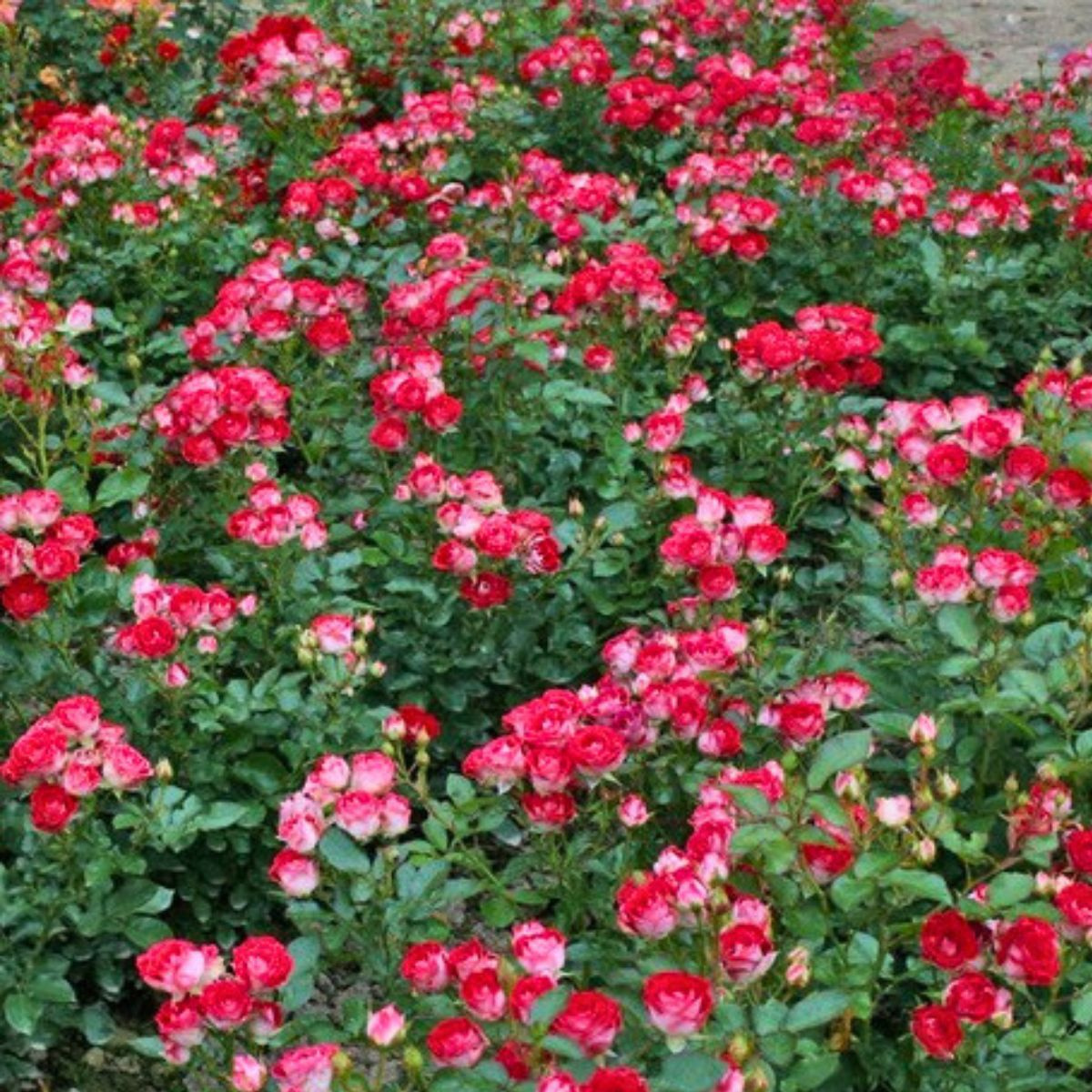Róża rabatowa Schone Koblenzerin czerwono-biała