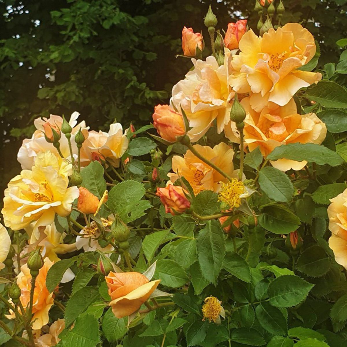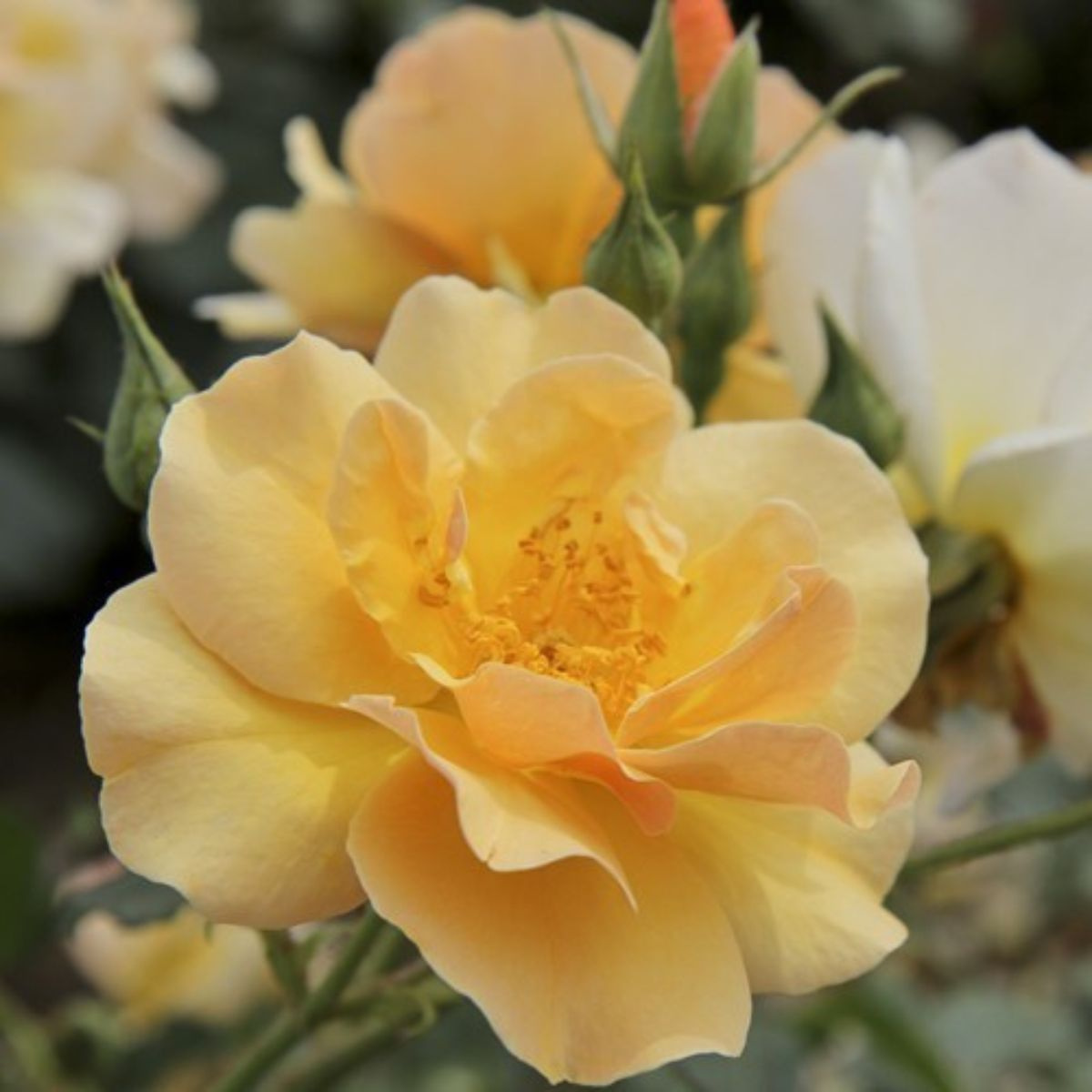 Róża rabatowa Campina Gold dorasta do 90cm wysokości i 60m szerokości. Kwiaty ma półpełne, o fantazyjnym słonecznym kolorze i średnicy 5-7cm. Róża ta silnie się krzewi, o pionowym pokroju, powtarza kwitnienie.