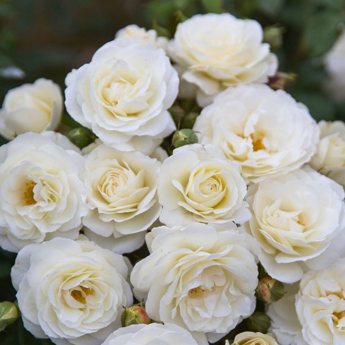 Róża rabatowa Midsummersnow biała dorasta do 70cm wysokości i 80cm szerokości. Kwiaty półpełne, o śnieżnobiałym kolorze i średnicy 5-6cm. Róża ta silnie się krzewi, o pionowym pokroju, powtarza kwitnienie.
