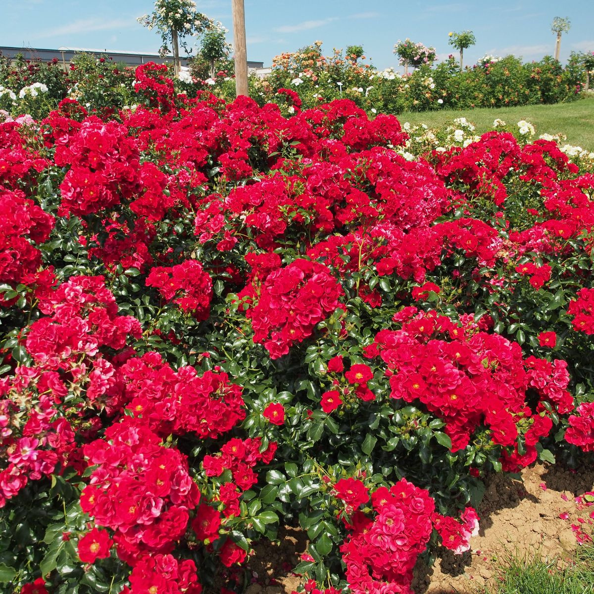 Róże rabatowe to grupa róż dorastająca od 50 do 100cm wysokości. Są one odporne na niskie temperatury, rosną kompaktowe i gęsto się rozkrzewiają. Ich cechą charakterystyczną jest niska wysokość i obfitość kwitnienia, aż do jesieni. Do róż rabatowych zaliczamy róże wielokwiatowe i ich mieszańce, które zachwycają liczbą kwiatów: od 3 do 25 na pędzie. Żadna inna grupa róż nie jest tak uniwersalna jak właśnie róże rabatowe. Można łączyć je w kompozycjach z innymi różami, bylinami i krzewami liściastymi i iglastymi. Wykorzystywane do nasadzeń na rabatach, klombach, donicach na balkonach.