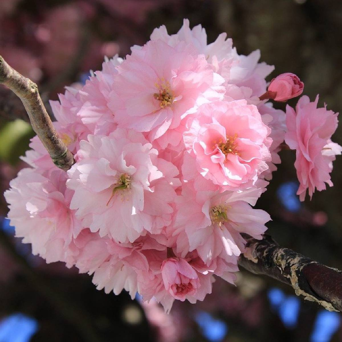 Kwiaty pojawiają się w maju – pełne, purpuroworóżowe, o średnicy 4.5–5 cm, zebrane w pęczki i osadzone na długich szypułkach. Urzekają przyjemnym zapachem i tworzą niezwykle malowniczy efekt na tle ciemnych liści, które utrzymują purpurowy kolor przez całą wiosnę i lato. Roślina preferuje stanowiska słoneczne, zaciszne oraz żyzne i wilgotne podłoże, dzięki czemu kwitnienie jest bardziej efektowne.