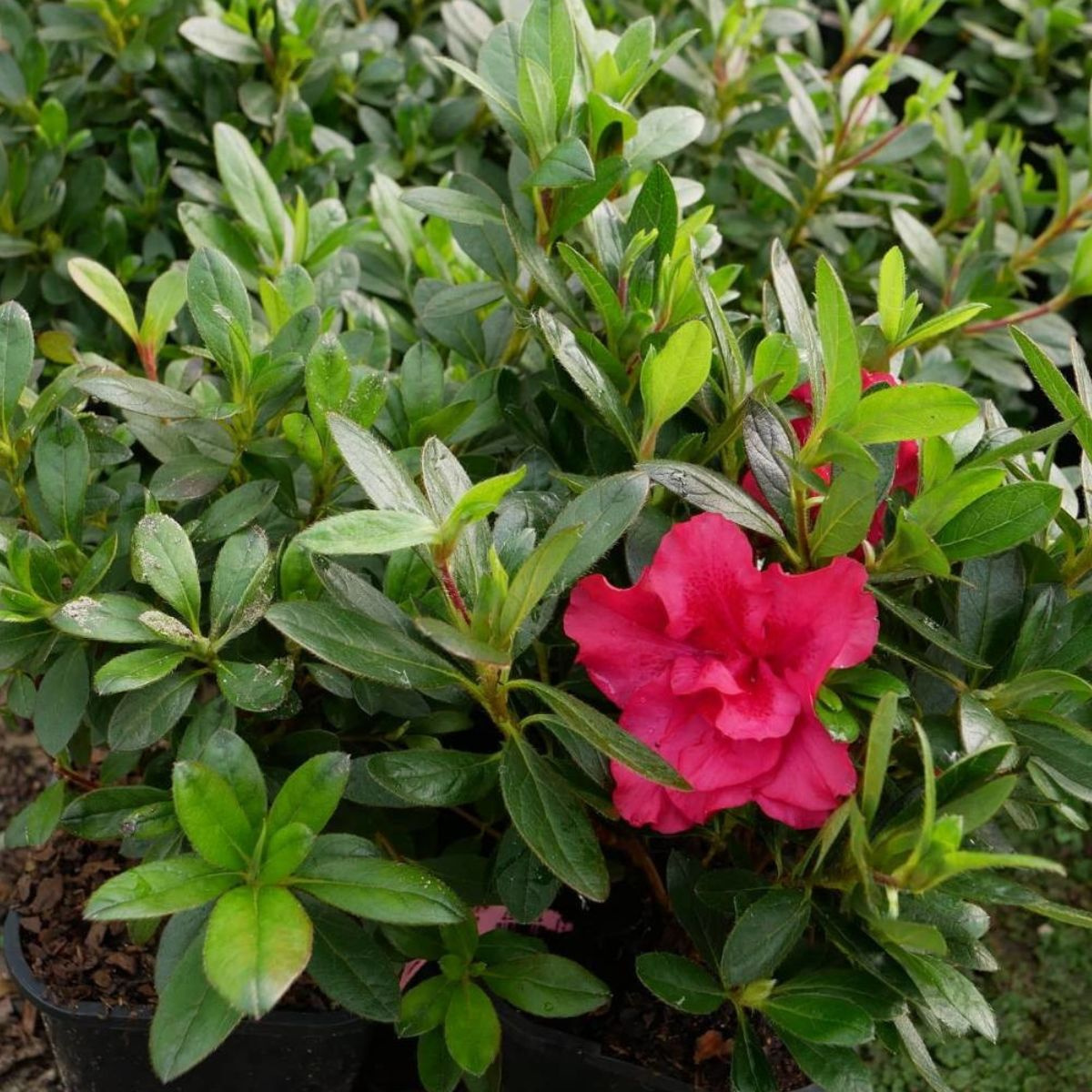 Staje się zwarta i zachowuje swój kulisty kształt. Azalia BloomChampion Fioletowy jest odporna na zimę i półzimozielona przez cały rok.