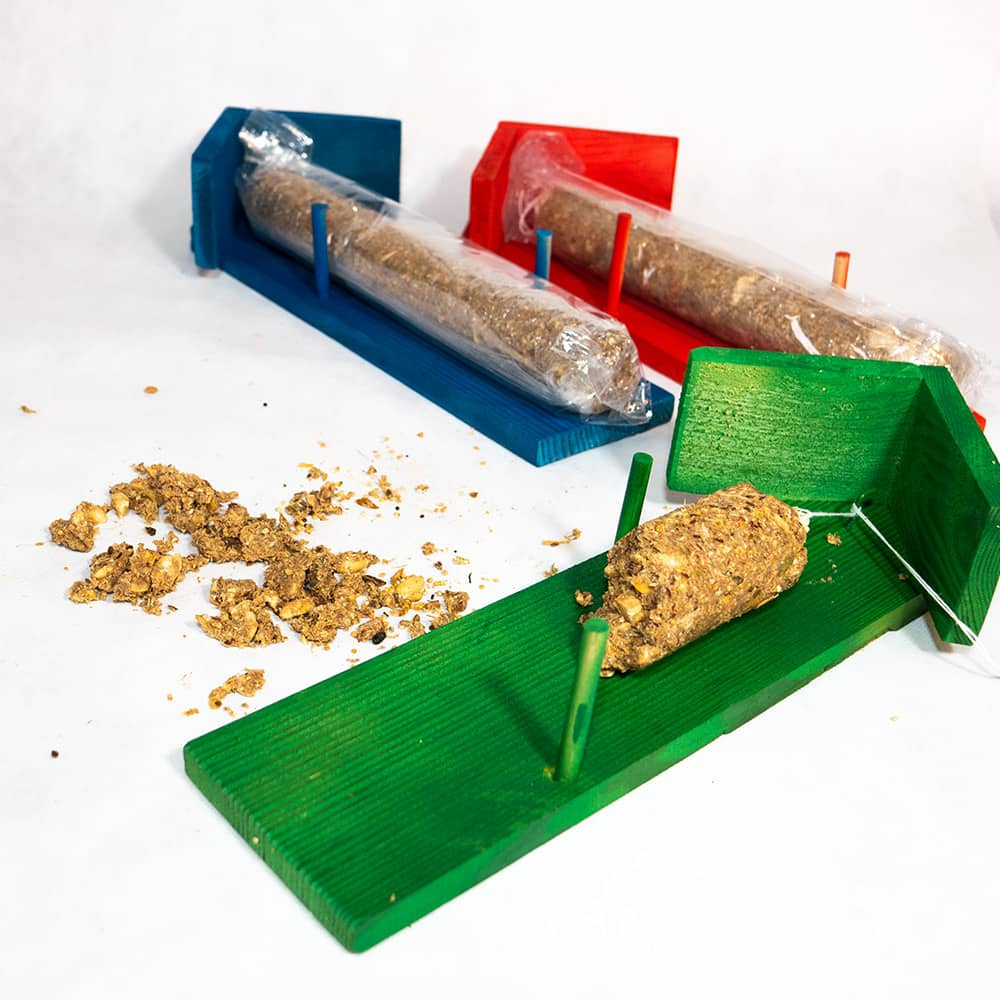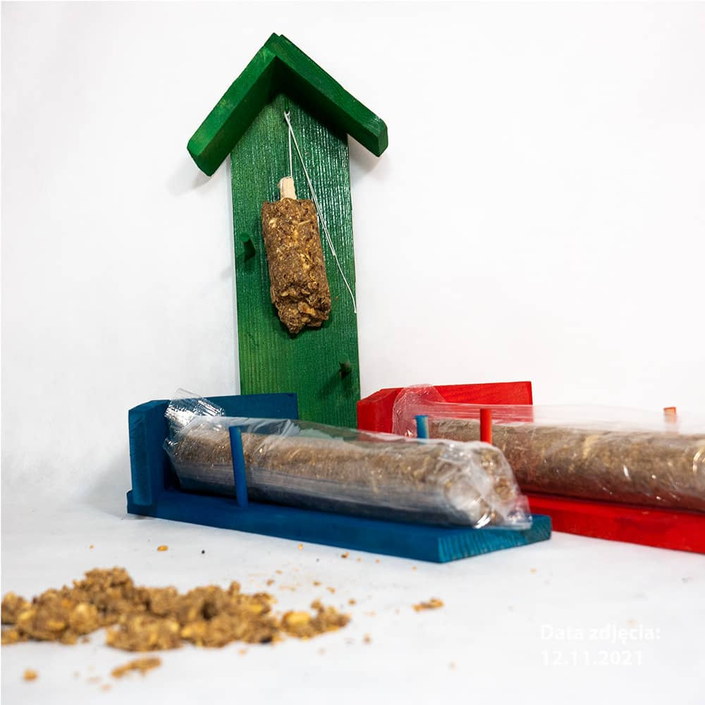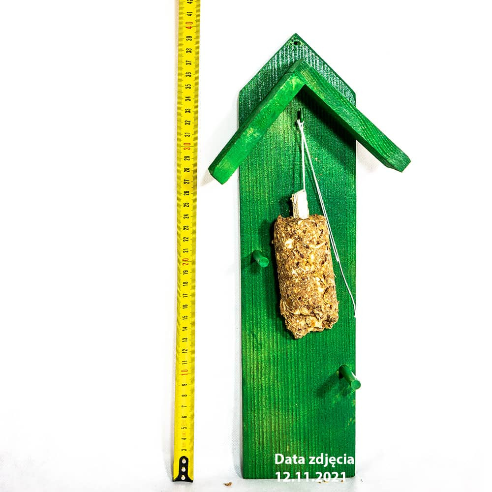 Pokarmem dla ptaków, który załączony jest do tego karmnika to kolba zbożowo-tłuszczowa.