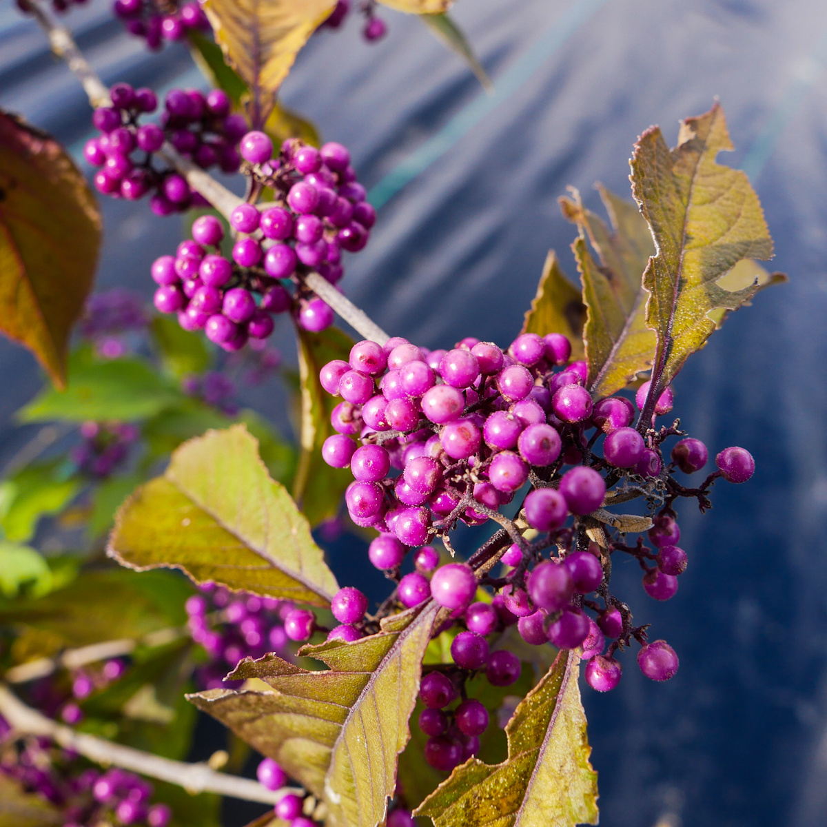 Największym atutem odmiany Imperial Pearl jest połączenie zwartego, kulistego pokroju z niezwykle efektownym owocowaniem, które stanowi ozdobę ogrodu przez wiele tygodni. Dzięki kompaktowej formie roślina doskonale nadaje się do mniejszych ogrodów, gdzie nie ma miejsca na rozłożyste krzewy, a jednocześnie jest wystarczająco efektowna, by pełnić rolę solitera w centralnym punkcie rabaty. Świetnie sprawdza się w nasadzeniach grupowych, na tle roślin iglastych, a także w kompozycjach z innymi krzewami o jesiennym ubarwieniu liści. Może być także sadzona w dużych pojemnikach na tarasach i balkonach, gdzie stanowi elegancki akcent dekoracyjny. Imperial Pearl to pięknotka, która łączy efektowny wygląd z łatwością utrzymania zwartej formy, co sprawia, że jest jedną z chętniej wybieranych odmian do nowoczesnych, uporządkowanych aranżacji ogrodowych.