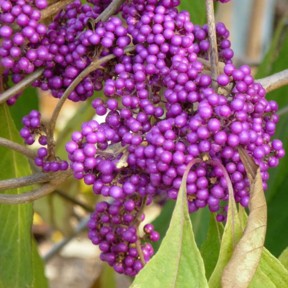 Kwiaty pięknotki Imperial Pearl pojawiają się w czerwcu i lipcu, mają subtelną fioletową barwę i są zebrane w drobne baldachogrona. Choć same w sobie nie stanowią dominującego elementu dekoracyjnego, to zapowiadają obfite, jesienne owocowanie. Od września na pędach zaczynają dojrzewać kuliste, błyszczące owoce o intensywnym, głębokim odcieniu fioletu. Jagody osadzone są gęsto wzdłuż smukłych pędów, a ich kolor kontrastuje z zielonym tłem liści, tworząc wyjątkowo dekoracyjny efekt. Po opadnięciu liści owoce pozostają na roślinie jeszcze przez długi czas – często aż do zimy – zdobiąc ogród w okresie, gdy większość roślin jest już w stanie spoczynku. Dzięki temu Imperial Pearl jest ceniona jako roślina przedłużająca sezon atrakcyjności ogrodu.
