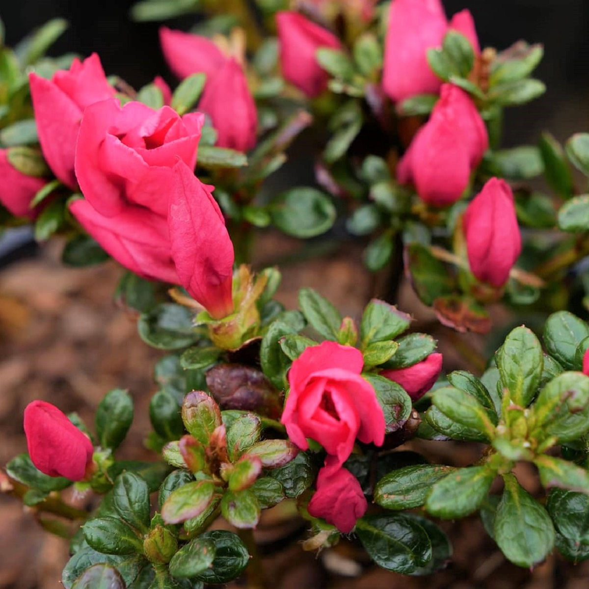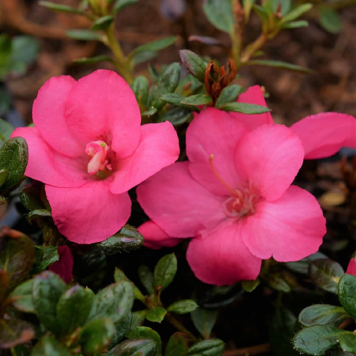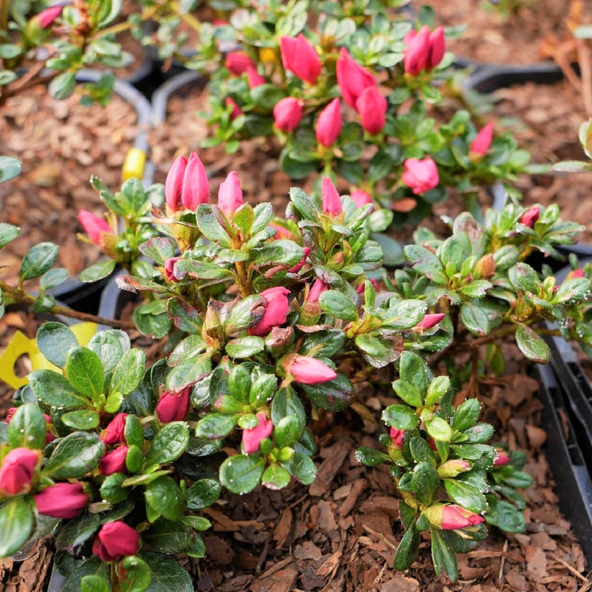 Azalia japońska to krzew zimozielony, o liściach eliptycznych, długości 2-5 cm, ciemnozielonych, błyszczących, kwiatach lejkowatych, o średnicy 5-6 cm. Przez krzyżowanie tego gatunku z innymi otrzymano wiele odmian ogrodowych o kwiatach pojedynczych lub pełnych, białych, różowych, łososiowych, liliowych, jasno- i ciemnoczerwonych. Azalie preferują stanowisko półcieniste, glebę przeciętną ogrodową, umiarkowanie wilgotną (w suche sezony należy je dodatkowo podlewać), o kwaśnym odczynie (pH 4,5-5,5), który sprawia, że wszystkie składniki pokarmowe są prawidłowo pobierane przez korzenie roślin. Z tego powodu azalie posadzone w ogrodzie powinny być regularnie zasilane specjalnym nawozem. W bezśnieżne zimy także warto je podlewać, jak również warto je okrywać, szczególnie gdy stanowisko narażone jest na mroźne wiatry.