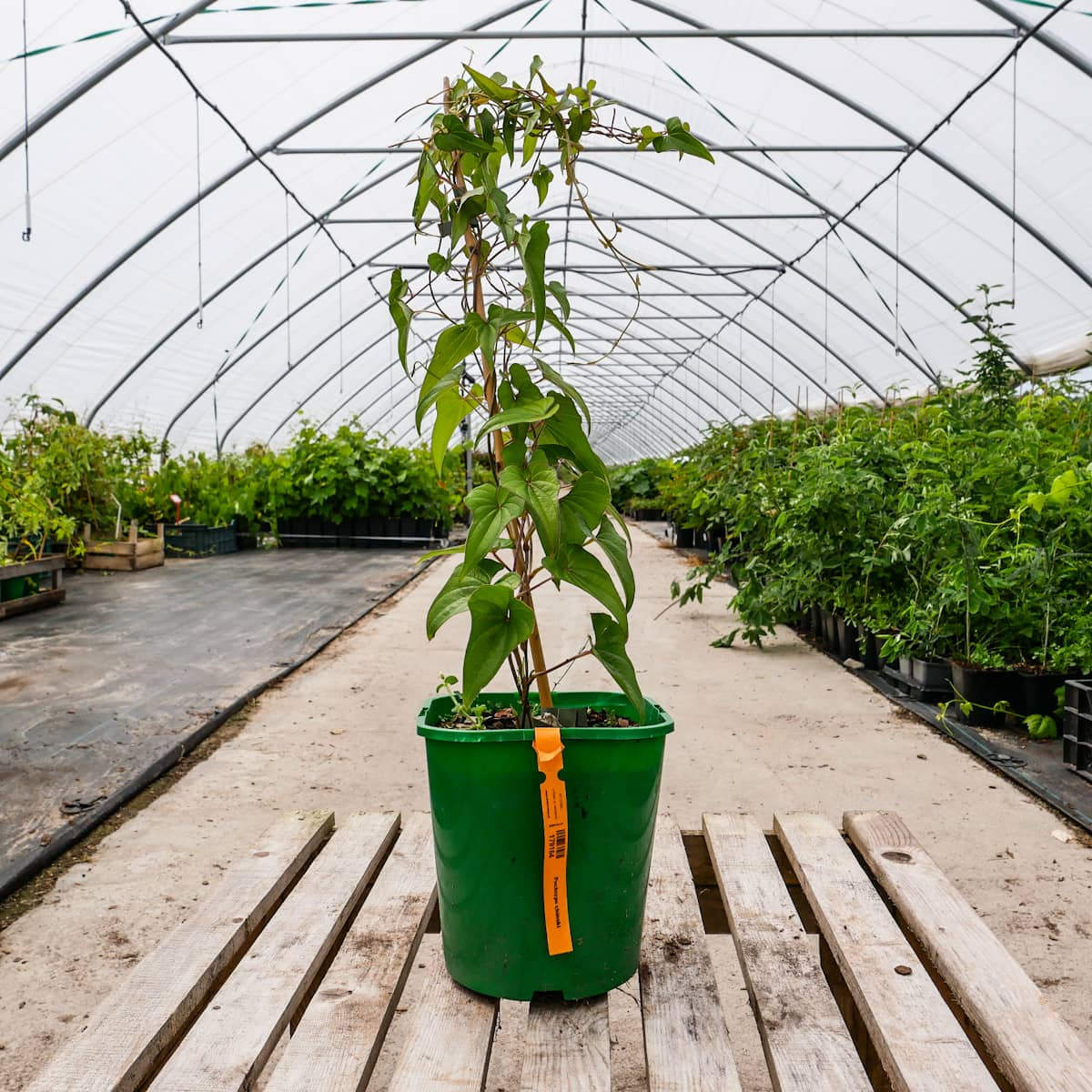 Bulwiasta bylina o jadalnych korzeniach, płożących pędach i dekoracyjnych liściach.Bylina dorasta do 3m wysokości, owijają się wokół podpór.