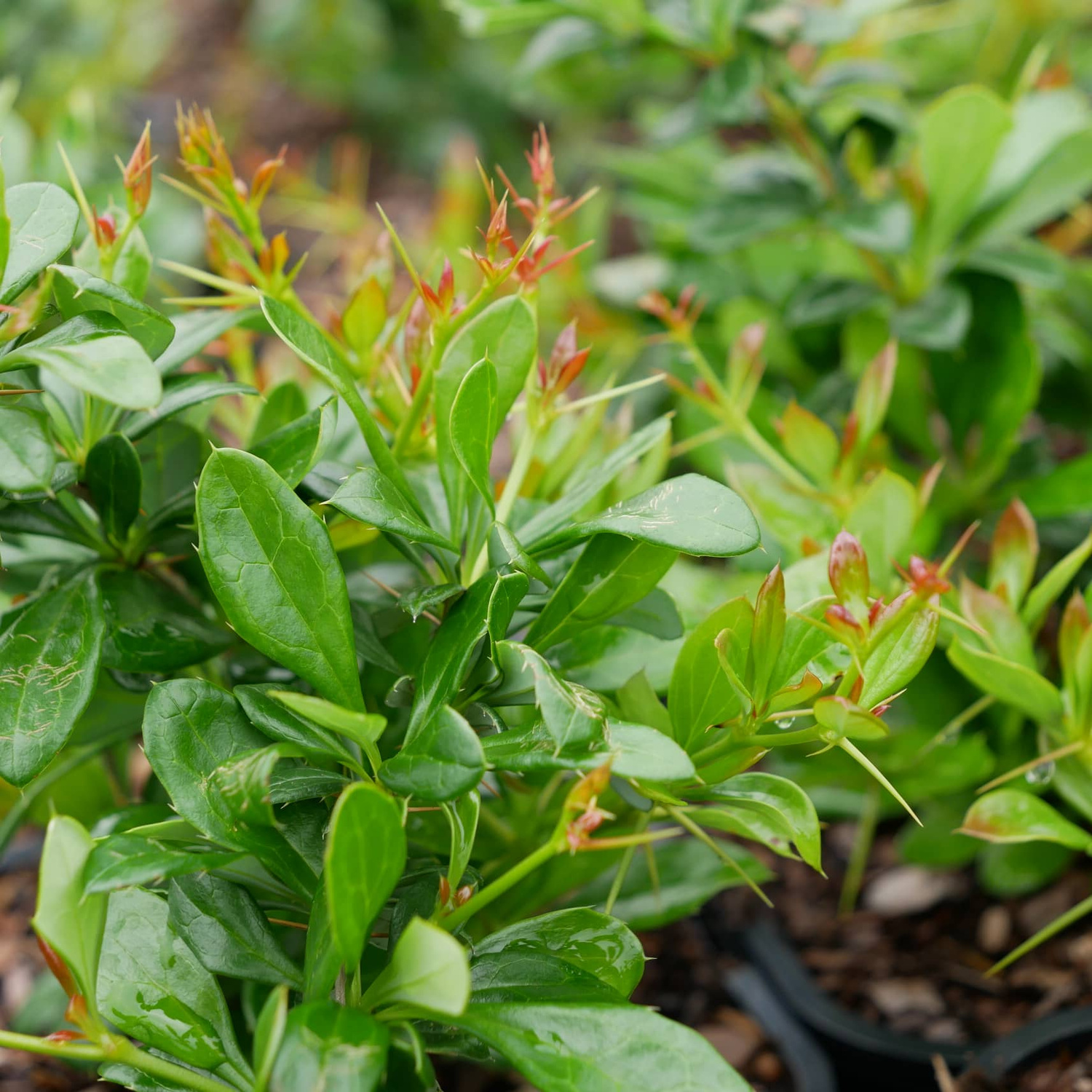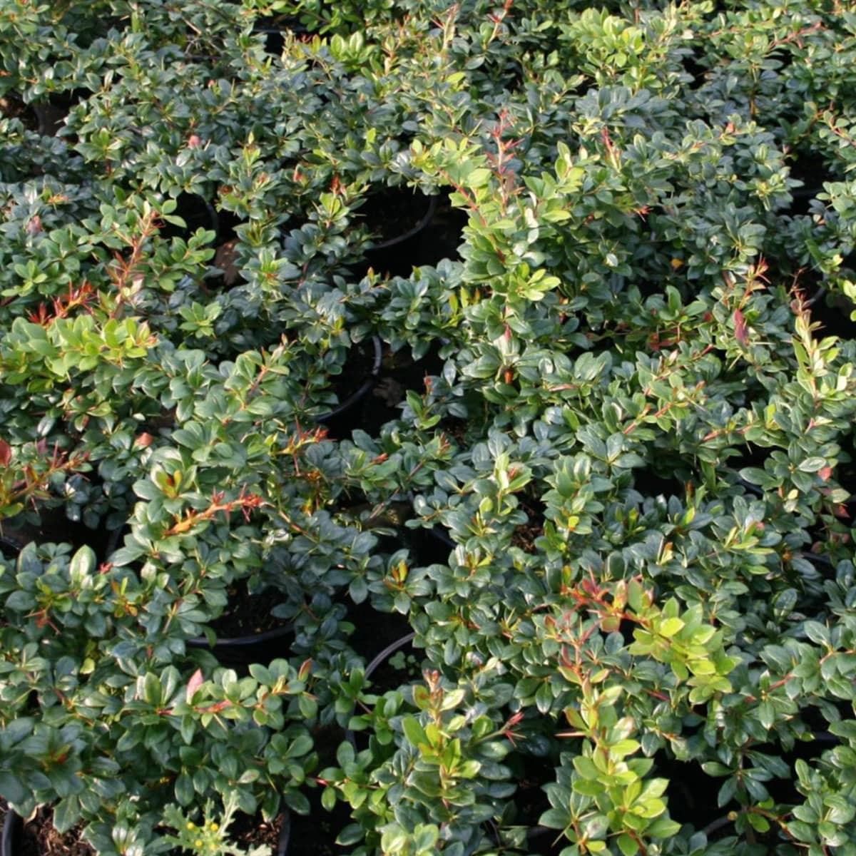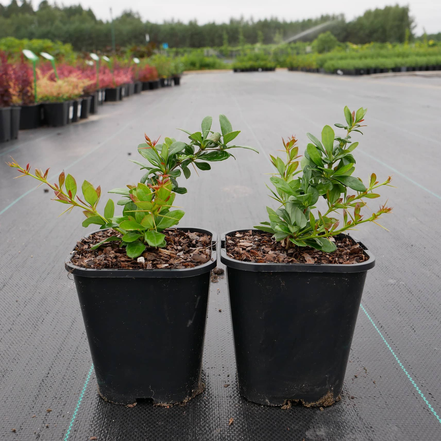 Berberys pośredni Parkjuweel (Berberis × media ‘Parkjuweel’) to niewysoki, kulisty krzew ozdobny o naturalnie regularnym, zwartym pokroju, który nie wymaga intensywnego formowania. Jego liście są ciemnozielone, błyszczące, dość gęsto ułożone, dzięki czemu cała roślina prezentuje się bardzo schludnie i elegancko. Liście nie zmieniają koloru drastycznie w ciągu sezonu, ale na jesień mogą nabierać lekko złocistych i ciepłych odcieni, w zależności od warunków siedliskowych. Tempo wzrostu odmiany Parkjuweel określane jest jako umiarkowane – roślina przyrasta rocznie o około 10–20 cm, co pozwala na łatwe utrzymanie jej w zaplanowanej przestrzeni. Dorosły krzew osiąga około 1–1,2 metra wysokości i podobną szerokość, co czyni go świetnym wyborem do nasadzeń o ograniczonej przestrzeni – w ogrodach przydomowych, przy ścieżkach, na rabatach i w miejskich założeniach zieleni. Sadzonki berberysu Parkjuweel wyróżniają się naturalną symetrią i klasyczną zielenią – estetyką ponadczasową, idealną do wielu stylów ogrodowych.