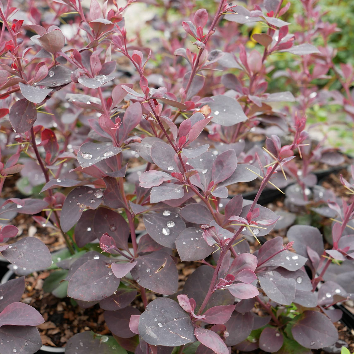 Berberys ottawski Superba (Berberis × ottawensis ‘Superba’) to bujnie rosnący, rozłożysty krzew ozdobny, który łączy walory berberysu pospolitego i berberysu Thunberga. Jest to odmiana silnie rosnąca – osiąga 3 do 4 metrów wysokości i podobną szerokość. Pokrój krzewu jest kulisty, z rozrastającymi się, sztywnymi pędami, które z wiekiem lekko przewieszają się na zewnątrz, tworząc efektowną koronę. Wzrost jest szybki i intensywny, co sprawia, że Superba już po kilku sezonach osiąga dojrzałe rozmiary i wypełnia przestrzeń w ogrodzie. Liście są duże jak na berberys, zielonopurpurowe, z metalicznym połyskiem. Ich barwa zmienia się w trakcie sezonu – od głębokiego bordo wiosną, przez purpurowo-zielone latem, aż po intensywnie czerwone i pomarańczowe jesienią. Dzięki tym efektownym przemianom kolorystycznym berberys Superba wnosi dynamiczne akcenty wizualne do ogrodu przez cały sezon. Sadzonki berberysu Superba szczególnie dobrze prezentują się w dużych przestrzeniach oraz jako dominujące punkty w kompozycjach.