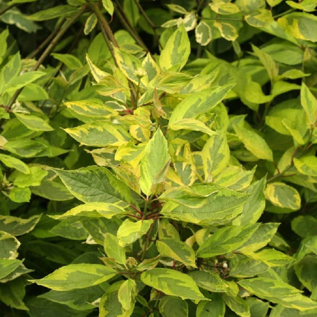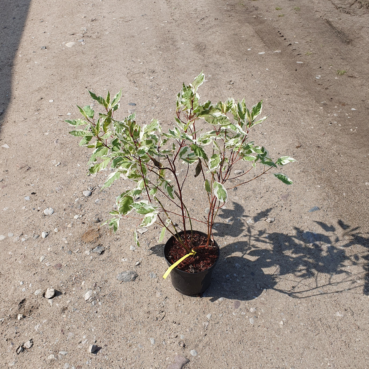 Dereń biały Cream Cracker (Cornus alba ‘Cream Cracker’) to nowa, pstrolistna odmiana derenia o wyjątkowo dekoracyjnych liściach. Ich barwa to połączenie zielonego środka z szerokimi, żółtokremowymi marginesami, które nadają roślinie niepowtarzalny charakter i rozświetlają rabaty. Krzew rośnie w formie gęstego, półkulistego pokroju, dzięki czemu znakomicie komponuje się zarówno w nasadzeniach soliterowych, jak i w grupach. Tempo wzrostu określa się jako umiarkowane – dereń osiąga docelowo około 1,5–2 m wysokości i podobną szerokość. Już we wczesnych latach uprawy prezentuje atrakcyjny wygląd, dlatego sadzonki derenia tej odmiany są chętnie wybierane przez miłośników oryginalnych krzewów. Sadzonki krzewów liściastych Cream Cracker uchodzą za jedne z ciekawszych propozycji dla osób ceniących rośliny dekoracyjne przez cały sezon.
