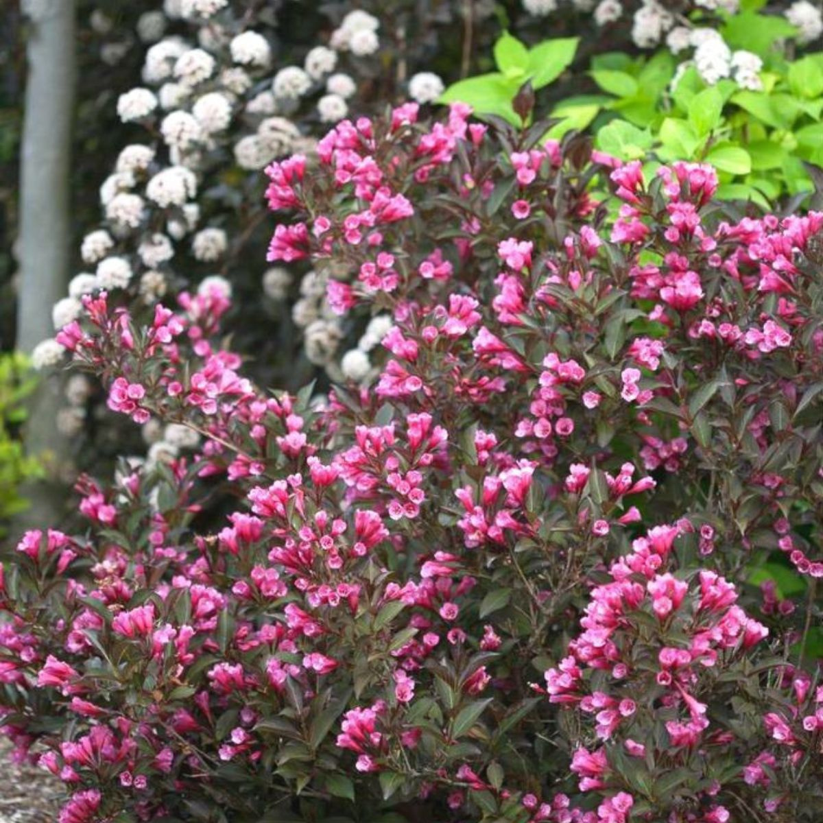 Odmiana ta ma wiele zalet, które czynią ją bardzo uniwersalną i wdzięczną w zastosowaniu. Oprócz intensywnie barwnych kwiatów i ciemnych liści, które zdobią roślinę od wiosny do jesieni, jej zwarty pokrój i dobra tolerancja cięcia sprawiają, że łatwo utrzymać ją w estetycznym kształcie. Nie wymaga specjalistycznej pielęgnacji – wystarczy lekkie przycięcie po kwitnieniu i ewentualnie cięcie prześwietlające wczesną wiosną, by zachować jej dekoracyjny charakter. Świetnie sprawdza się zarówno w ogrodach nowoczesnych, jak i bardziej klasycznych. Może być sadzona pojedynczo na tle trawnika, w grupach po kilka sztuk jako kolorowy szpaler, a także w zestawieniach z bylinami, trawami ozdobnymi czy roślinami o jasnym ulistnieniu, z którymi tworzy efektowne kontrasty. Nadaje się również do dużych donic na tarasach i balkonach, o ile zapewni się jej odpowiednią glebę i podlewanie.