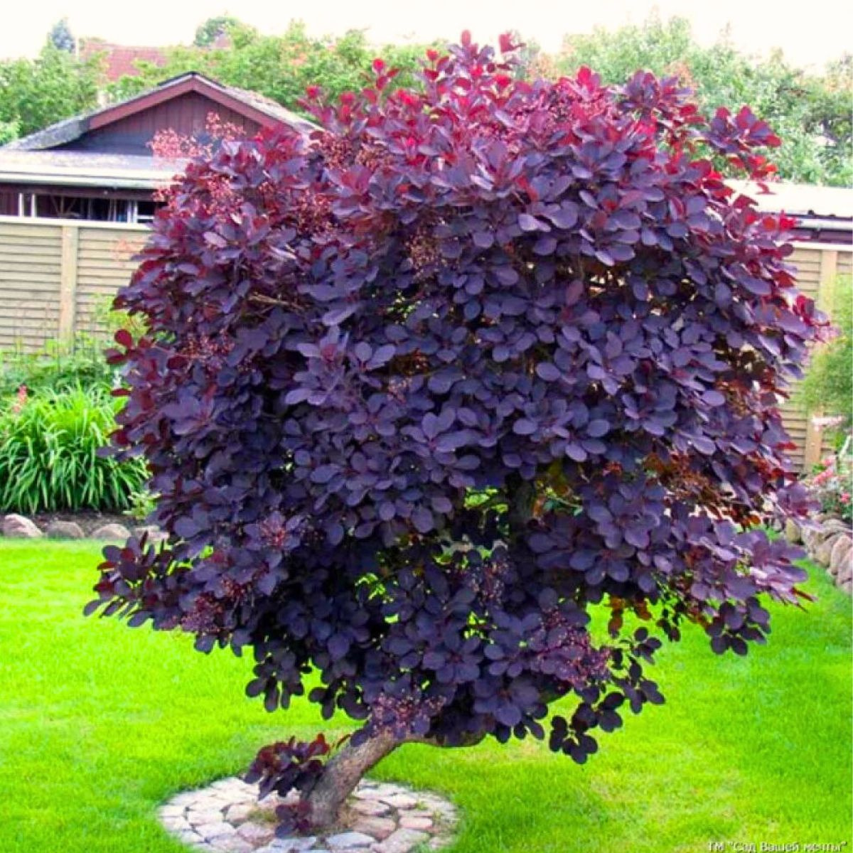 Największą zaletą odmiany Royal Purple jest jej trwała, wielosezonowa dekoracyjność. Roślina zachwyca intensywną barwą liści, efektownymi owocostanami oraz pięknymi, jesiennymi przebarwieniami w odcieniach czerwieni i pomarańczu. Dzięki wzniesionemu, kolumnowemu pokrojowi świetnie sprawdza się jako soliter, podkreślając reprezentacyjne części ogrodu, ale równie dobrze wygląda w nasadzeniach grupowych, gdzie tworzy wyraziste kontrasty kolorystyczne. Perukowiec Royal Purple doskonale nadaje się do ogrodów przydomowych, parków i aranżacji miejskich, wnosząc do nich elegancję, nowoczesność i wyrazisty akcent kolorystyczny. To roślina, która łączy w sobie łatwość uprawy, odporność i niezwykłe walory ozdobne.