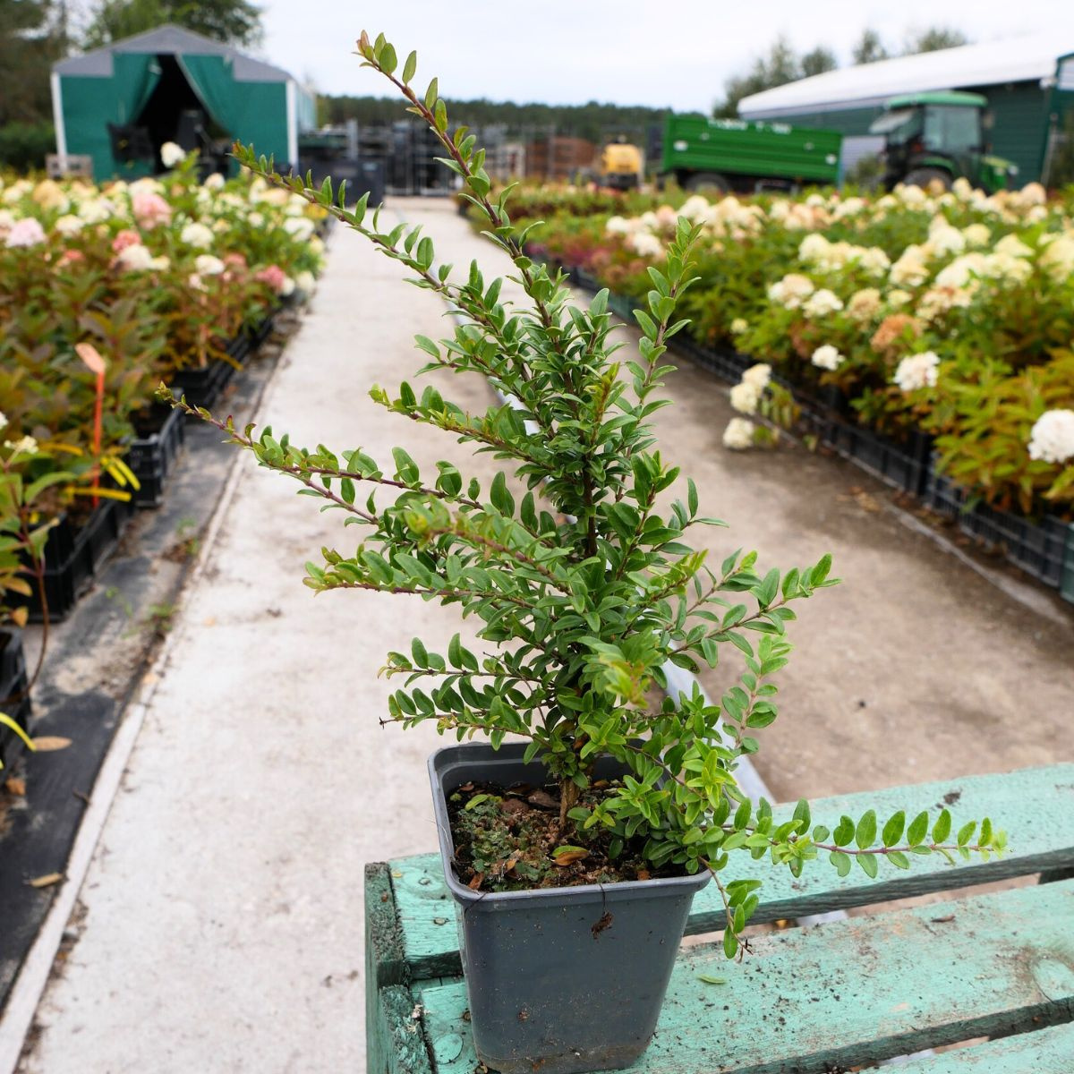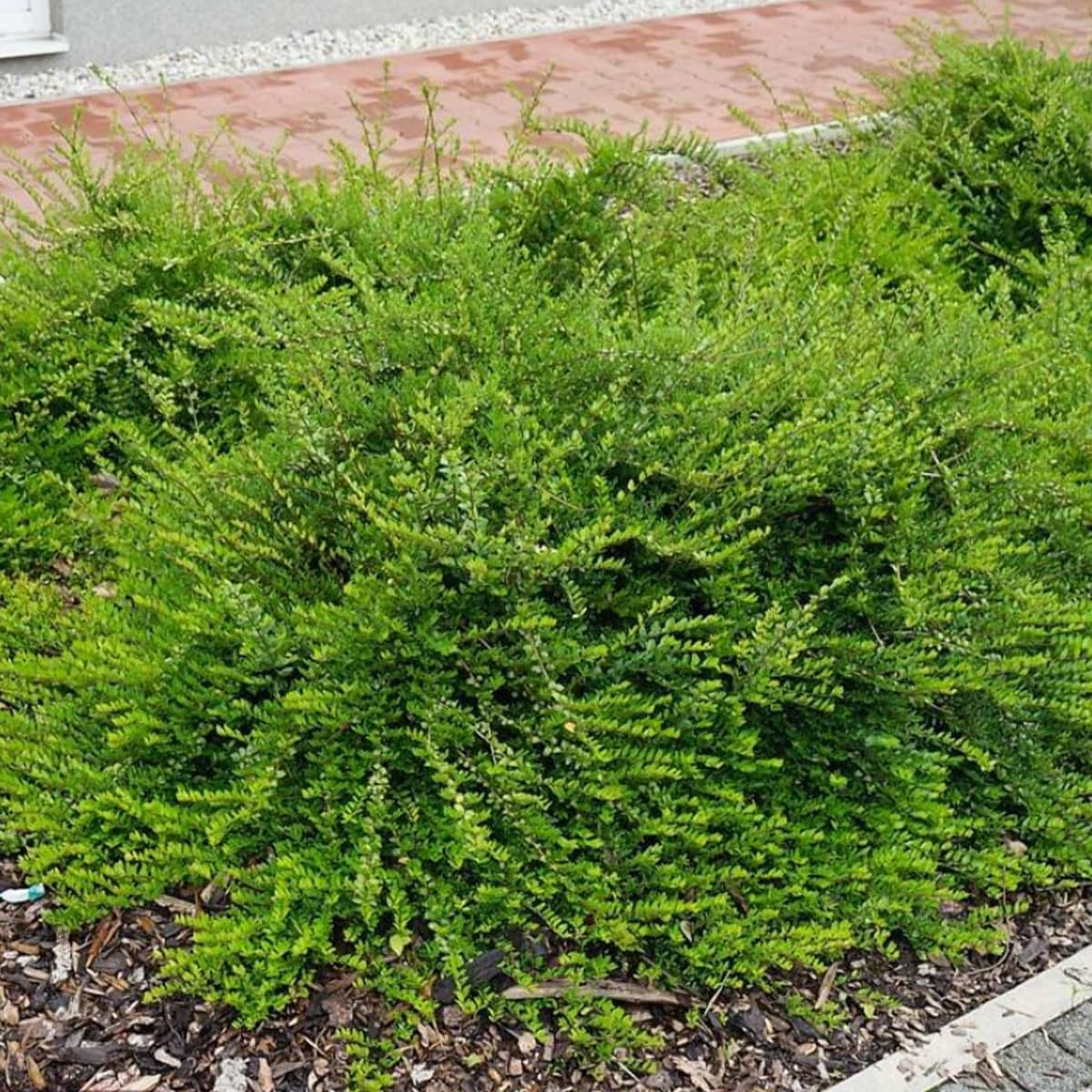 Zimozieloony, szybkorosnący krzew dorastający do 1m wysokości i 1,5m szer. Pędy łukowato wygięte, a na nich ułożone naprzeciwlegle, matowozielone liście. Atrakcyjnie wygląda posadzony w grupach lub w formie niskich żywopłotów.
