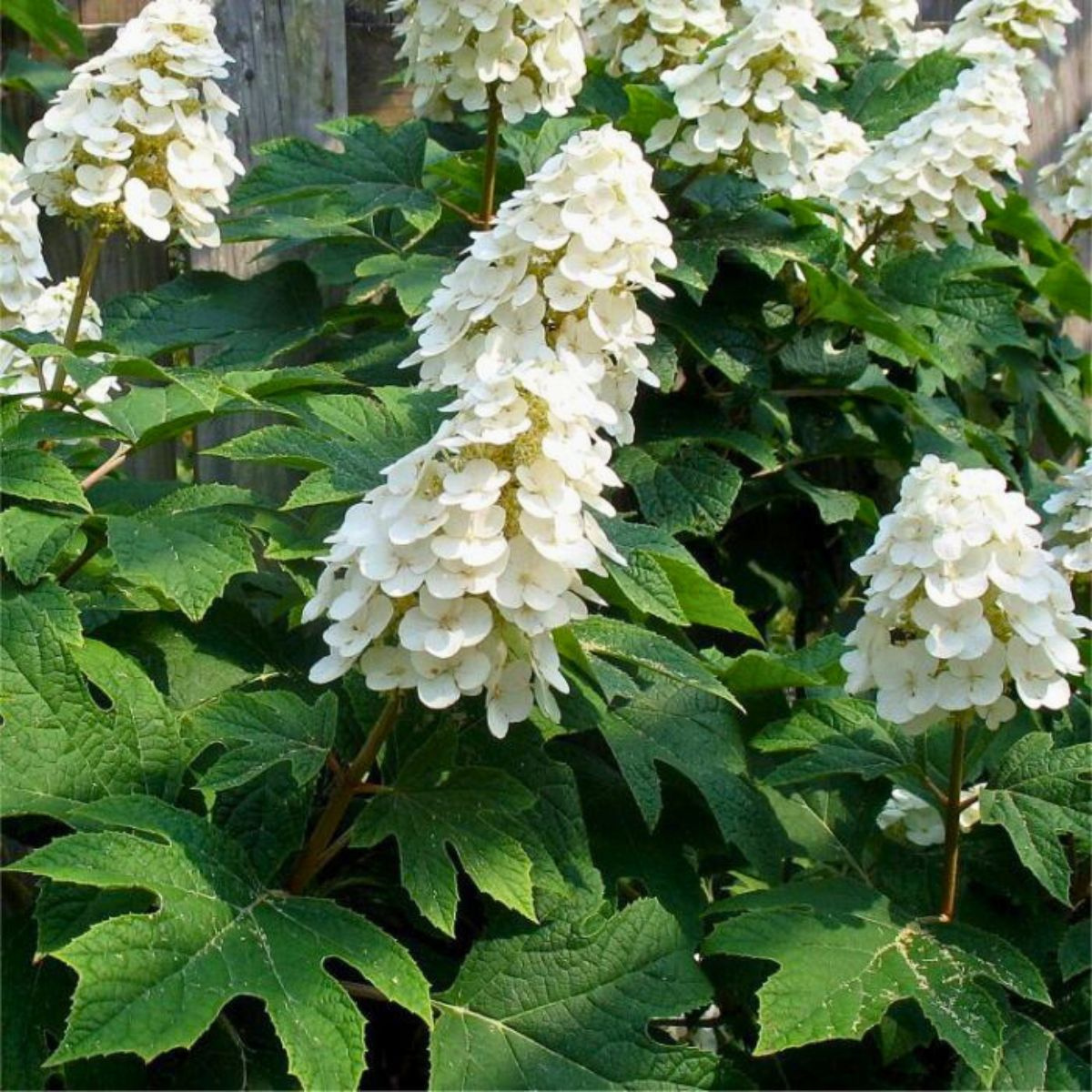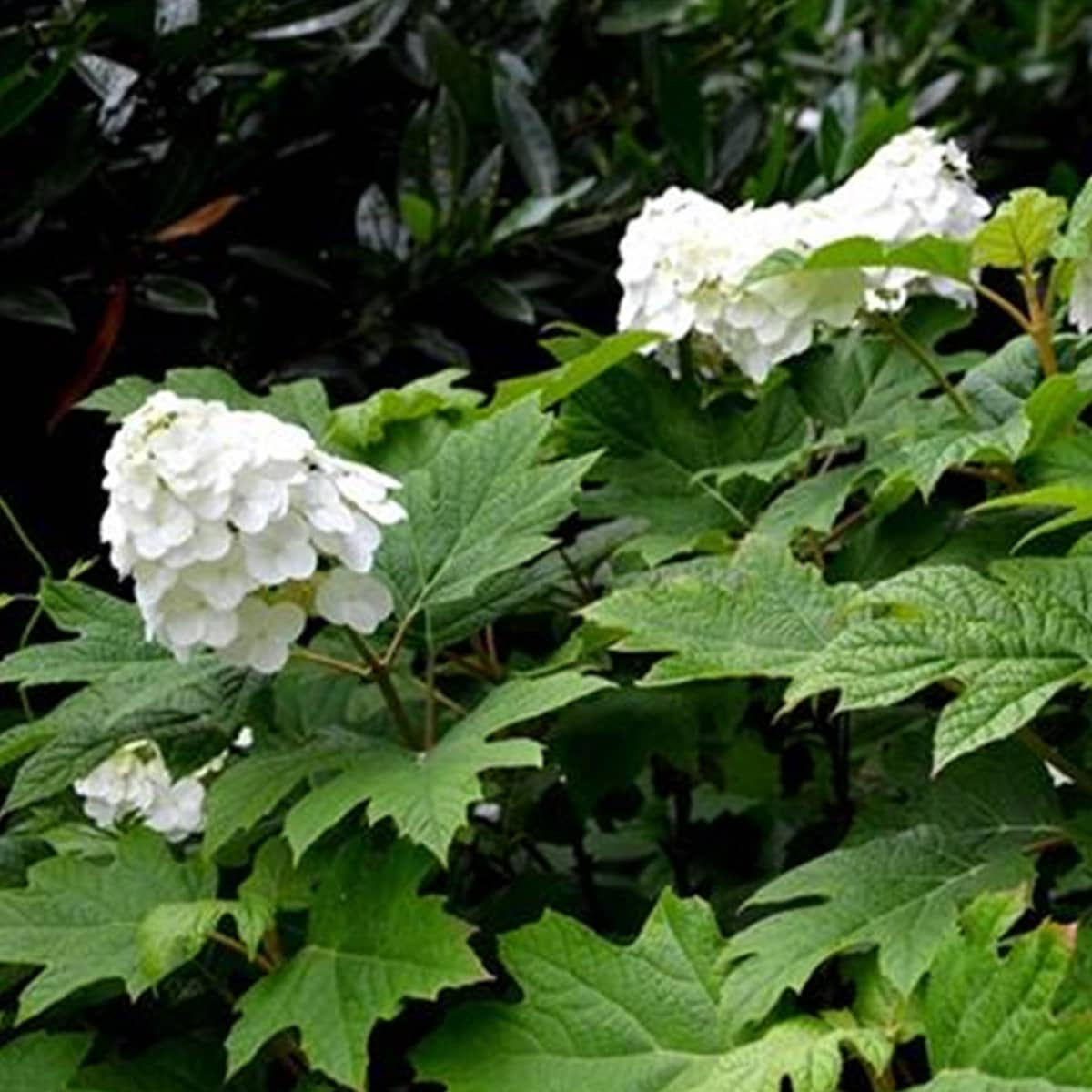 Kwitnienie odmiany Ice Crystal jest subtelne, ale bardzo eleganckie. Rozpoczyna się na przełomie czerwca i lipca, co czyni ją jedną z wcześniejszych hortensji dębolistnych. Tworzy stożkowate, wiechowate kwiatostany, które osiągają średnią wielkość (zazwyczaj 15–20 cm długości). Składają się głównie z kwiatów płonnych w kolorze czystej bieli, co w połączeniu z ciemną zielenią liści daje bardzo świeży, klasyczny efekt. W miarę przekwitania kwiaty mogą delikatnie różowieć, co dodaje im romantycznego charakteru i zwiększa ich wartość dekoracyjną. Cechą charakterystyczną tej odmiany jest również długotrwałość kwiatów – utrzymują się one na roślinie przez wiele tygodni, stopniowo zmieniając kolor i strukturę, aż do późnego lata. Co więcej, także po przekwitnięciu kwiatostany nadal zdobią krzew, nadając mu dziki, naturalny wygląd. Jesienią główną ozdobą stają się jednak liście – intensywnie przebarwiające się w odcieniach czerwieni, burgundu i purpury, czasem z lekkim połyskiem. To właśnie ten efekt jesiennego ognia sprawia, że hortensja Ice Crystal pozostaje atrakcyjna długo po zakończeniu kwitnienia, oferując dynamiczną dekorację sezonową.
