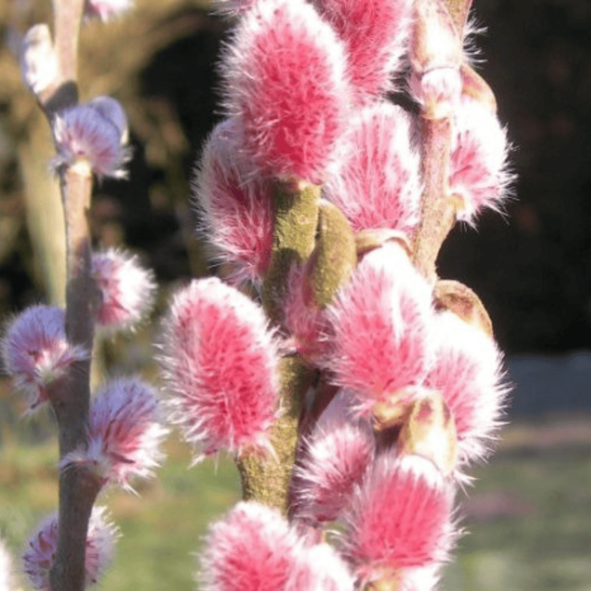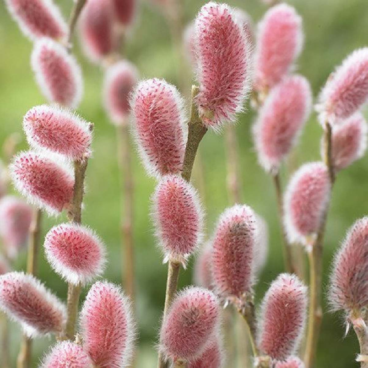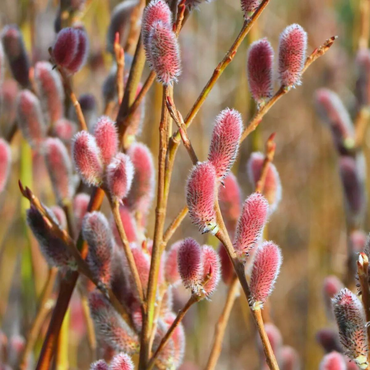 Wierzba wiotka Mt Aso to niezwykle efektowna odmiana szczepiona na pniu, która zachwyca swoim nietuzinkowym wyglądem przez cały sezon. Jej największą ozdobą są niezwykłe, jedwabiste kotki w intensywnym, różowoczerwonym kolorze, które pojawiają się już pod koniec zimy – zanim jeszcze rozwiną się liście. To idealna roślina do wprowadzenia elementu zaskoczenia w ogrodzie, na tarasie lub nawet w większej donicy na balkonie.