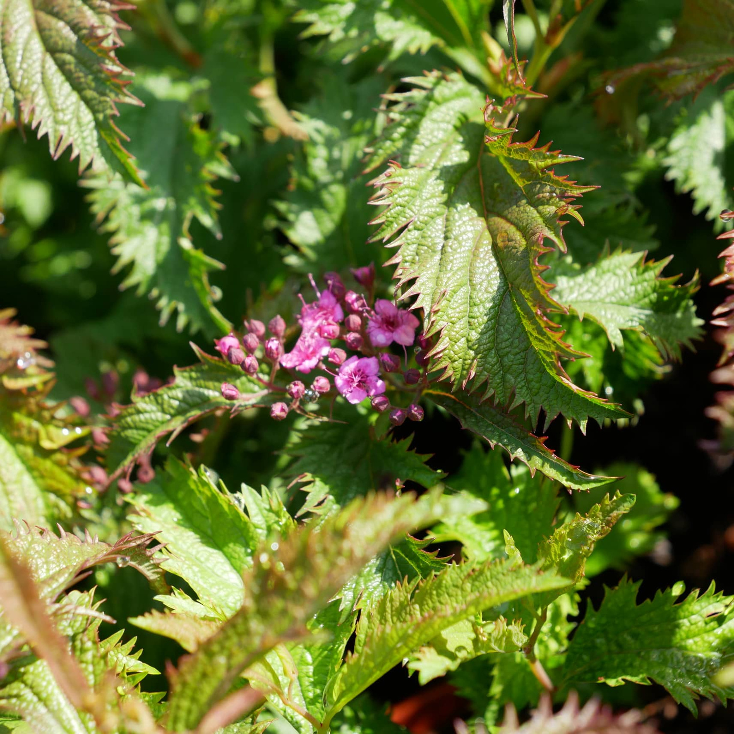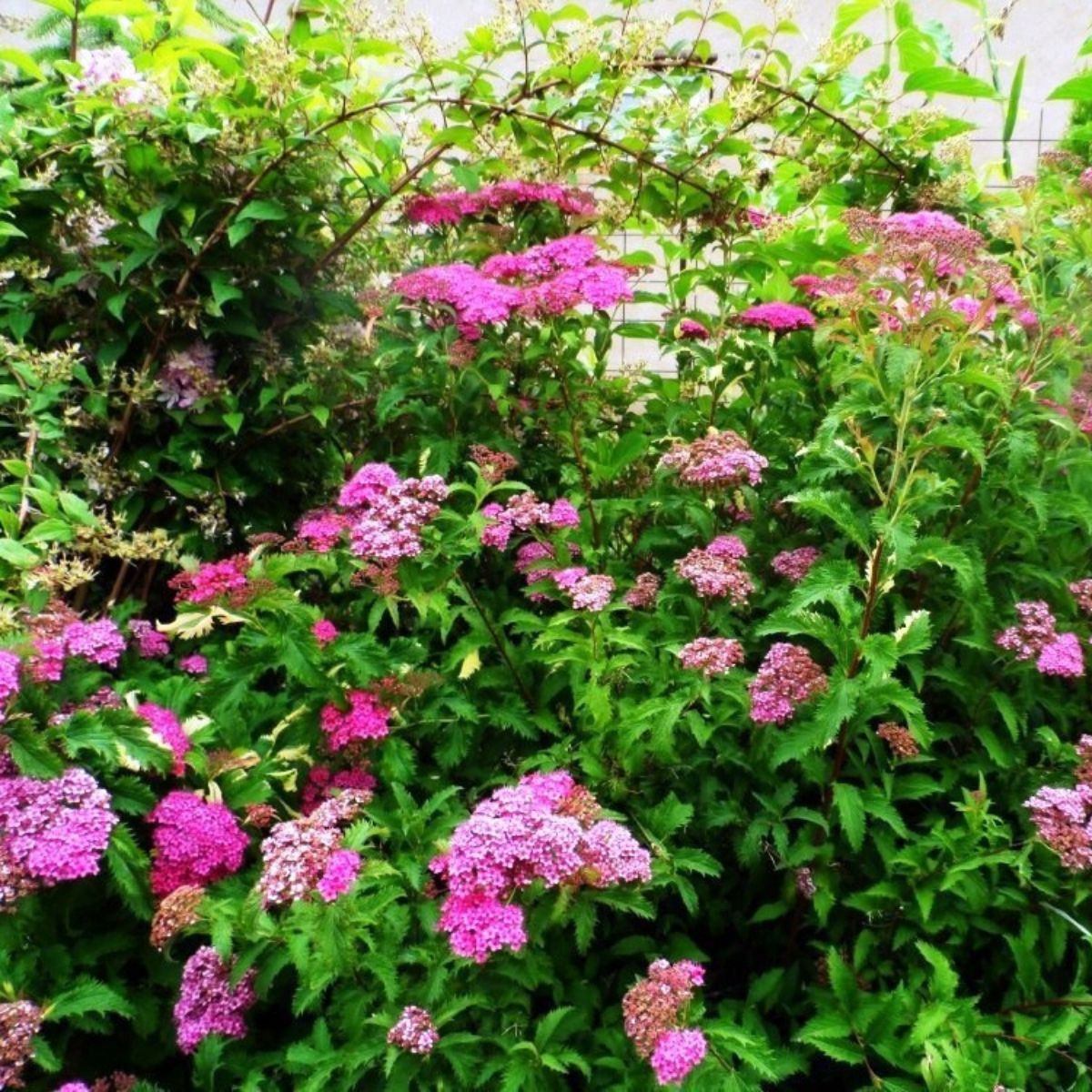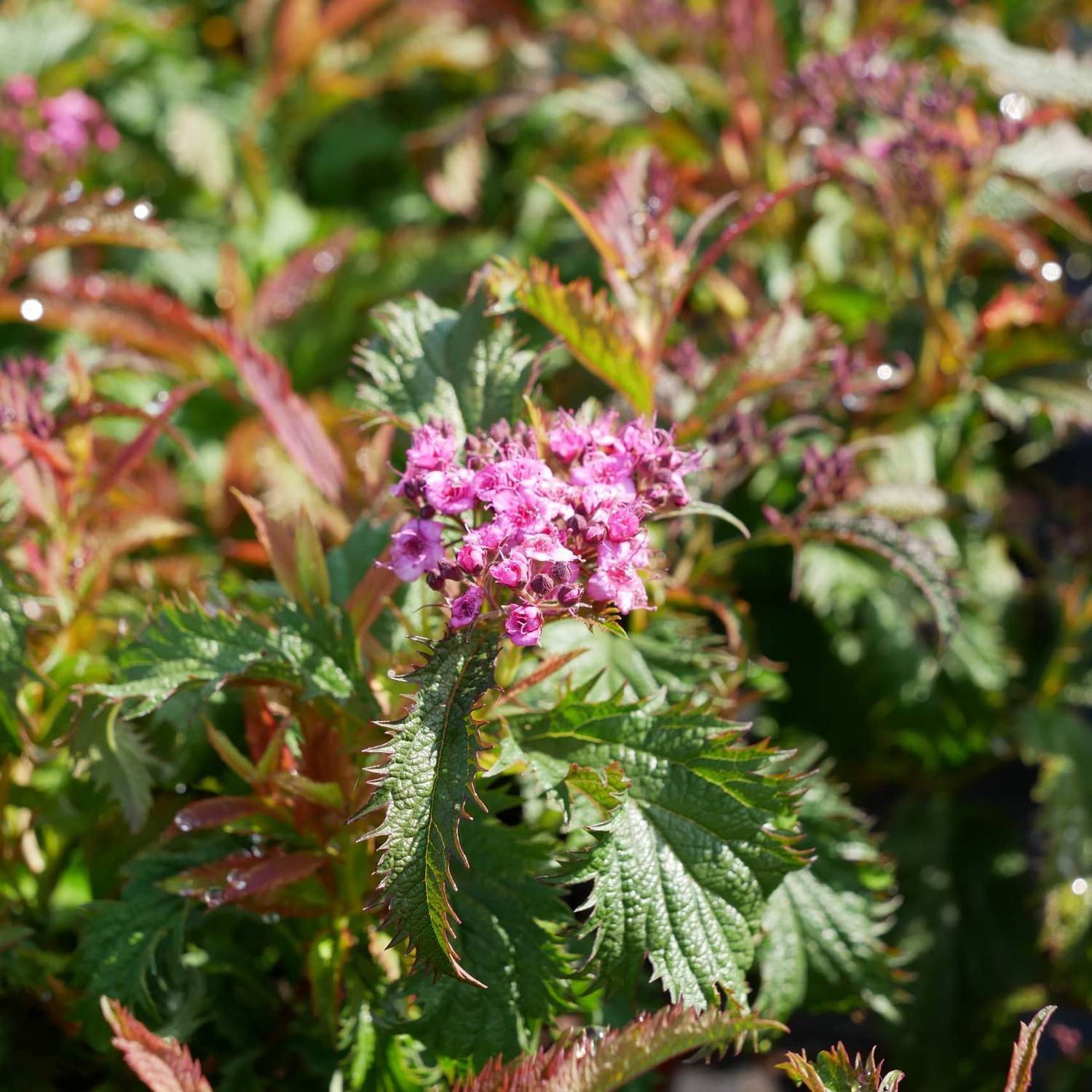 Niewysoki krzew o wzniesionych pędach i zwartym, wyprostowanym pokroju. Dorasta około 50cm wysokości. Charakteryzuje się oryginalnym ulistnieniem i obfitym kwitnieniem. Młode przyrosty liści i pędów mają czerwoną barwę. Kwitnie latem, VI-VII. Tworzy gęste kwiatostany z ciemnoróżowych kwiatów, które przyciągają motyle.