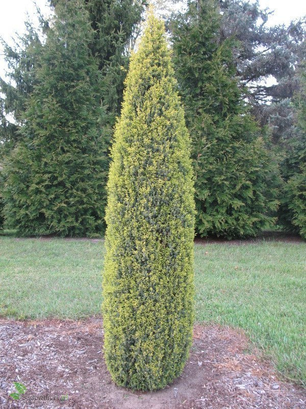 Kolumnowa odmiana jałowca pospolitego.Wąska odmiana o dosyć wolnym tempie wzrostu, osiągająca w wieku 10 lat około 1,5 m wysokości. Pędy i gałązki wyprostowane, wzniesione, ułożone równolegle obok siebie, tworzące zwarte kolumny zaokrąglone na szczycie. Igły złocistożółte wiosną, później żółtozielone. Odmiana łatwa w uprawie, mało wymagająca. Dobrze rośnie na miejscach słonecznych, glebach lekkich. Znosi suszę jest wystarczająco mrozoodporna, aby mogła być uprawiana na terenie prawie całego kraju. Jedynie na Suwalszczyźnie powinna być sadzona w miejscach zacisznych, osłoniętych od mroźnego wiatru w okresie zimy.Doskonale nadaje się na skalniaki.Dla dobrego rozwoju roślin i dostarczenia potrzebnych składników polecamy nawóz do roślin iglastych.