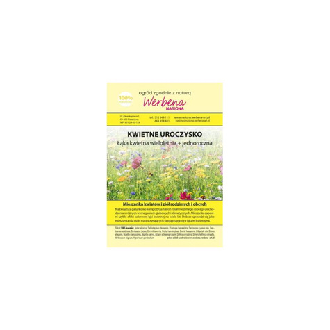 Mieszanka Kwietne uroczysko to ponad 100 gatunków kwiatów i ziół. Mieszanka może być wysiewana na wszystkich typach gleby wiosną i latem, w miejscach słonecznych i półcienistych. Jednoroczne gatunki znajdujące się w tej mieszance będą cieszyć wieloma kolorami już w roku wysiewu a w kolejnych gatunkami wieloletnimi.