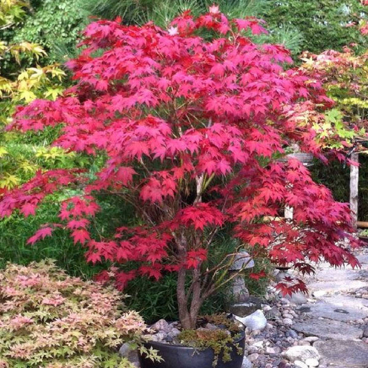 Odmiana będąca popularnym wyborem wśród entuzjastów japońskich ogrodów. To niewielkie drzewko świetnie wpasuje się także w styl nowoczesny i minimalistyczny. Piękno klonów palmowych rośnie z wiekiem, dlatego warto zasadzić więcej niż jedną roślinę. Ze względu na swój kompaktowy pokrój "Beni Maiko" może być sadzony w dużych donicach na tarasach oraz w przydomowych ogrodach. Nadaje się do barwnych, jak i pokrojowych zestawień.