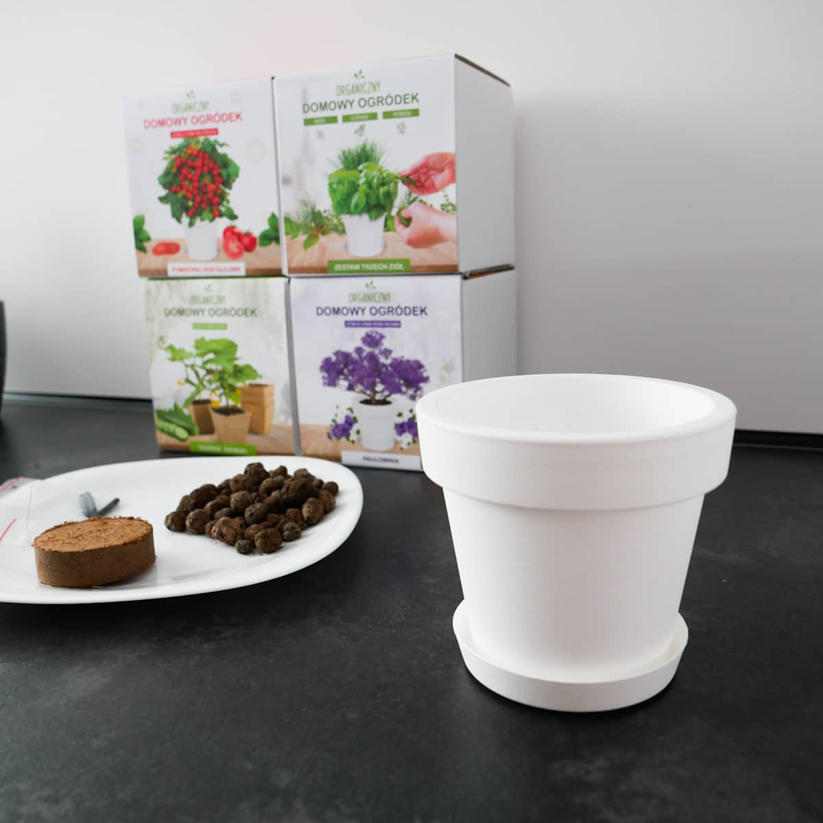4. Przygotuj doniczkę z zestawu. Na jej dno wsyp keramzyt, a następnie wypełnij doniczkę przygotowanym wcześniej podłożem. Zostaw małą garść podłoża, za chwile będzie Ci potrzebna.