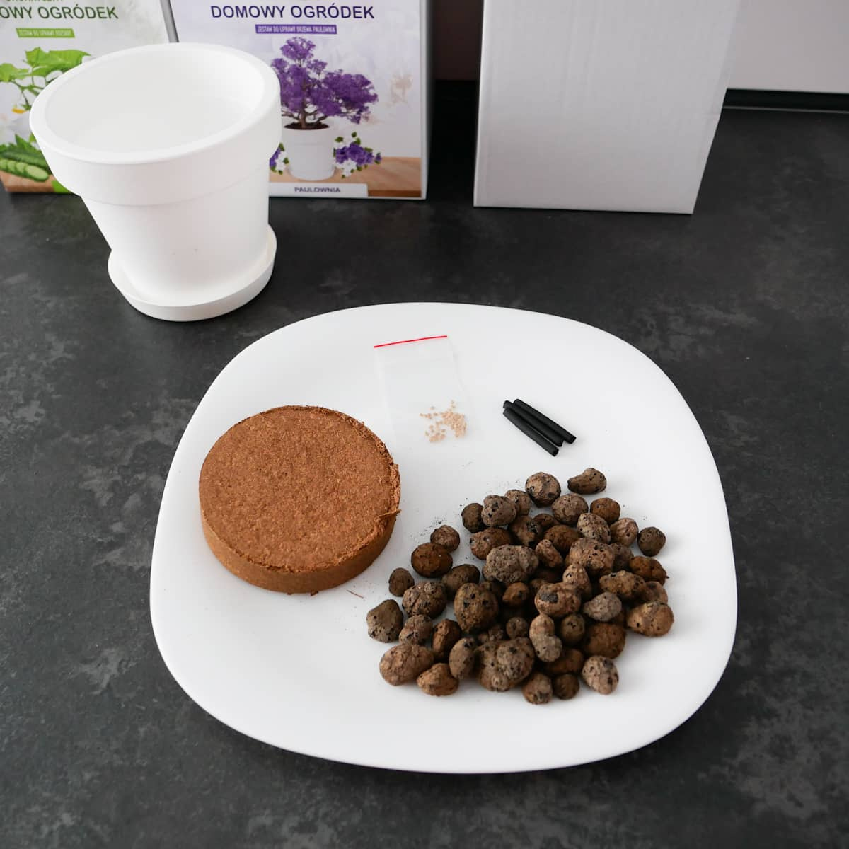 Krok nr2. Przygotuj położę pęczniejące. W zestawie otrzymasz 3 kostek koksowych. Włóż kostki do miski i zalej je wrzątkiem. Mocz je tak długo aż osiągną swój prawidłowy rozmiar. Możesz namoczyć wszystkie kostki na raz lub każdą osobno. Podłoże odstaw do wystygnięcia.