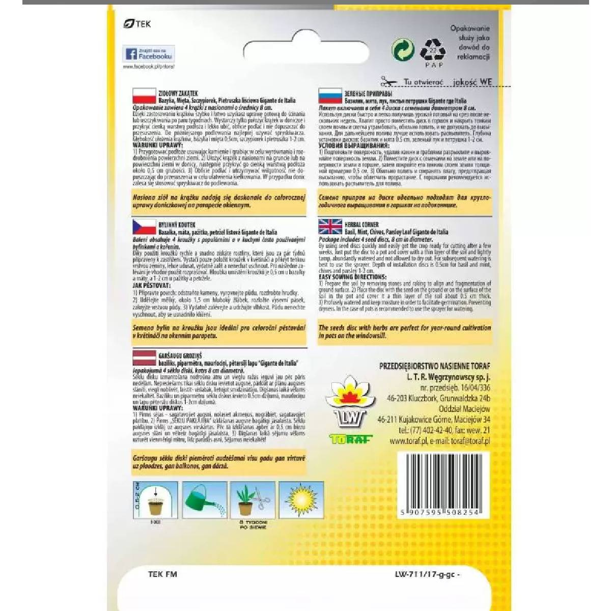 Docelowa wysokośćdo 30cmNasiona na krążku Ziołowy Zakątek Szczypiorek Bazylia Pietruszka Mięta