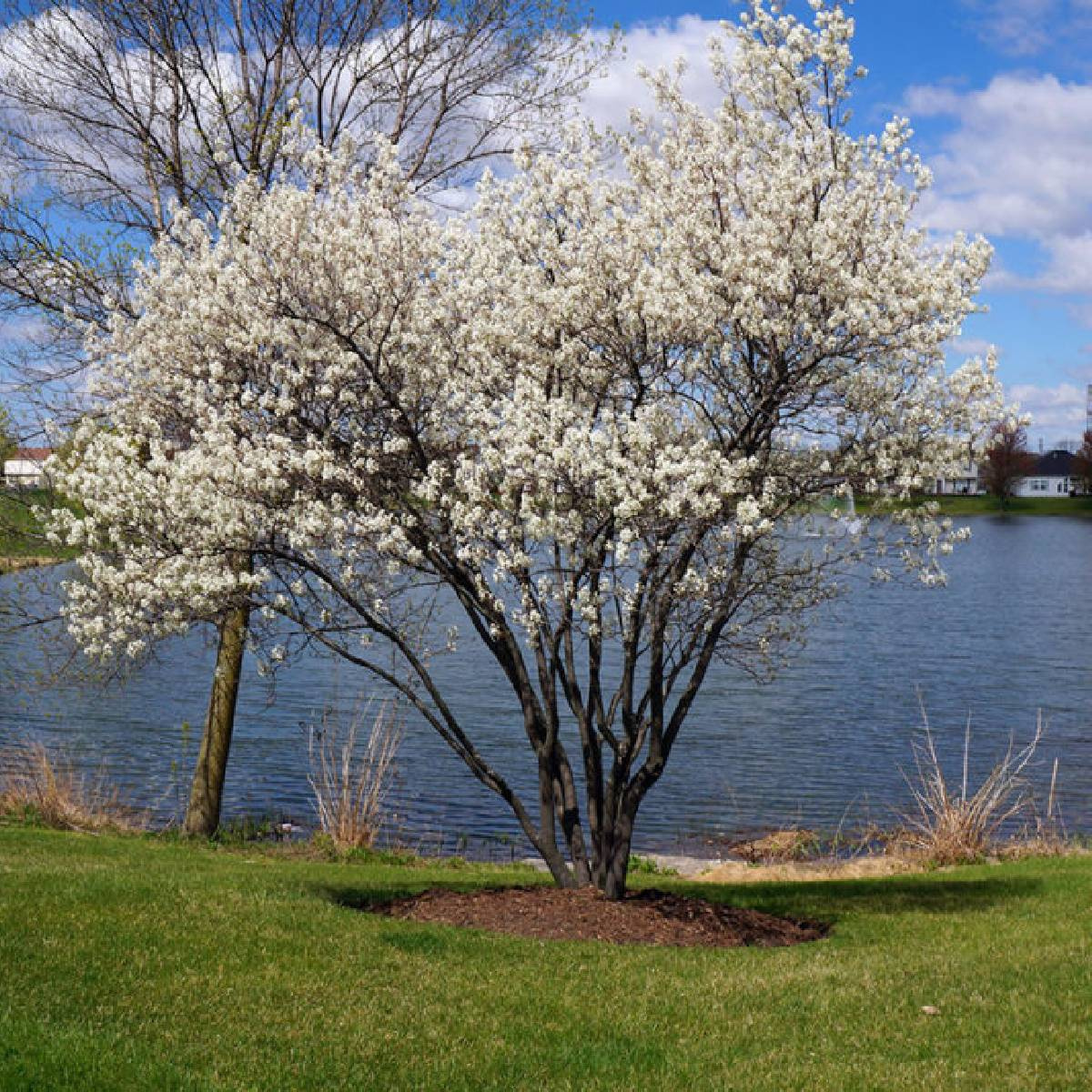 Krzew owocowy osiągający wysokość do 2,5 metra i rozłożysty, wyprostowany pokrój. Liście na początku sezonu zmieniają kolor na brązowy, a jesienią przybierają odcień pomarańczowo-czerwony. Obfite, kremowo-białe kwiaty o średnicy około 2 cm pojawiają się pod koniec kwietnia i na początku maja, skupione są w dużych i gęstych gronach. Owoce tej odmiany są największe wśród tego gatunku i przypominają wielkością borówki.