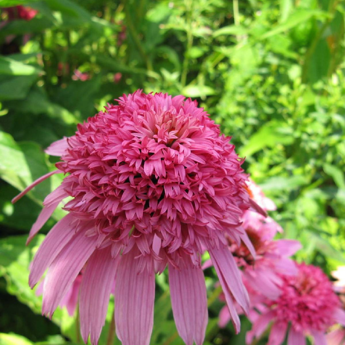 Jeżówka Southern Belle to wyjątkowa sadzonka jeżówki, wyróżniająca się pełnymi, podwójnymi kwiatami o intensywnie różowym „pomponie” otoczonym krótkimi, delikatnymi płatkami w jaśniejszym odcieniu. Ta niezwykle dekoracyjna bylina dorasta do 100 cm wysokości, tworząc zwartą, półkulistą formę, która zachwyca swoim wyglądem od lipca aż do października.