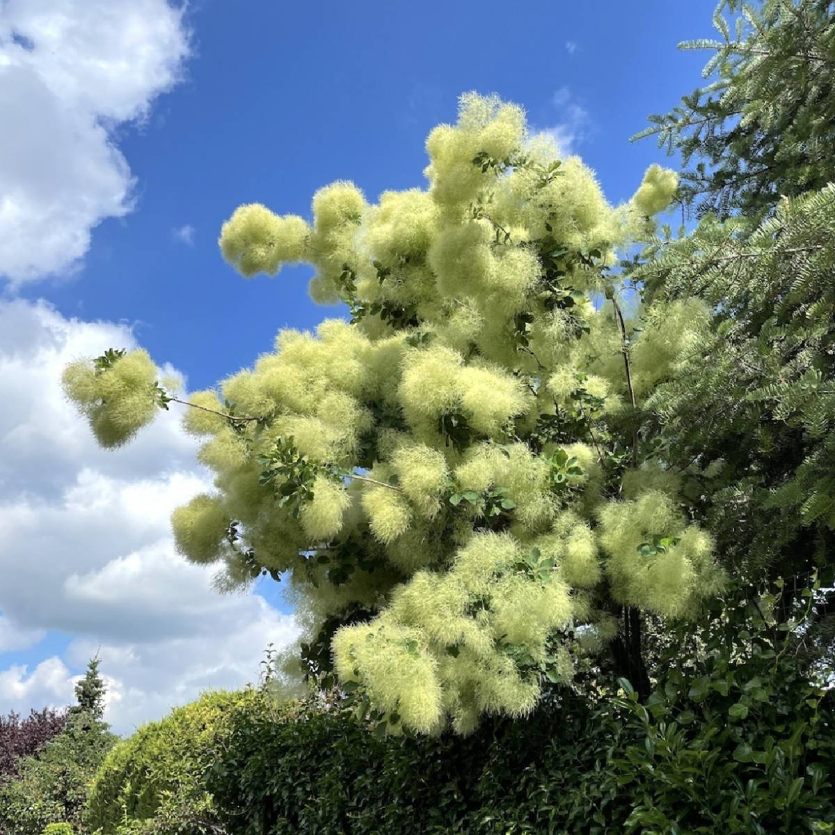 • Ozdobne owocostany: puszyste, kremowobiałe, przypominające peruki – kluczowa cecha dekoracyjna