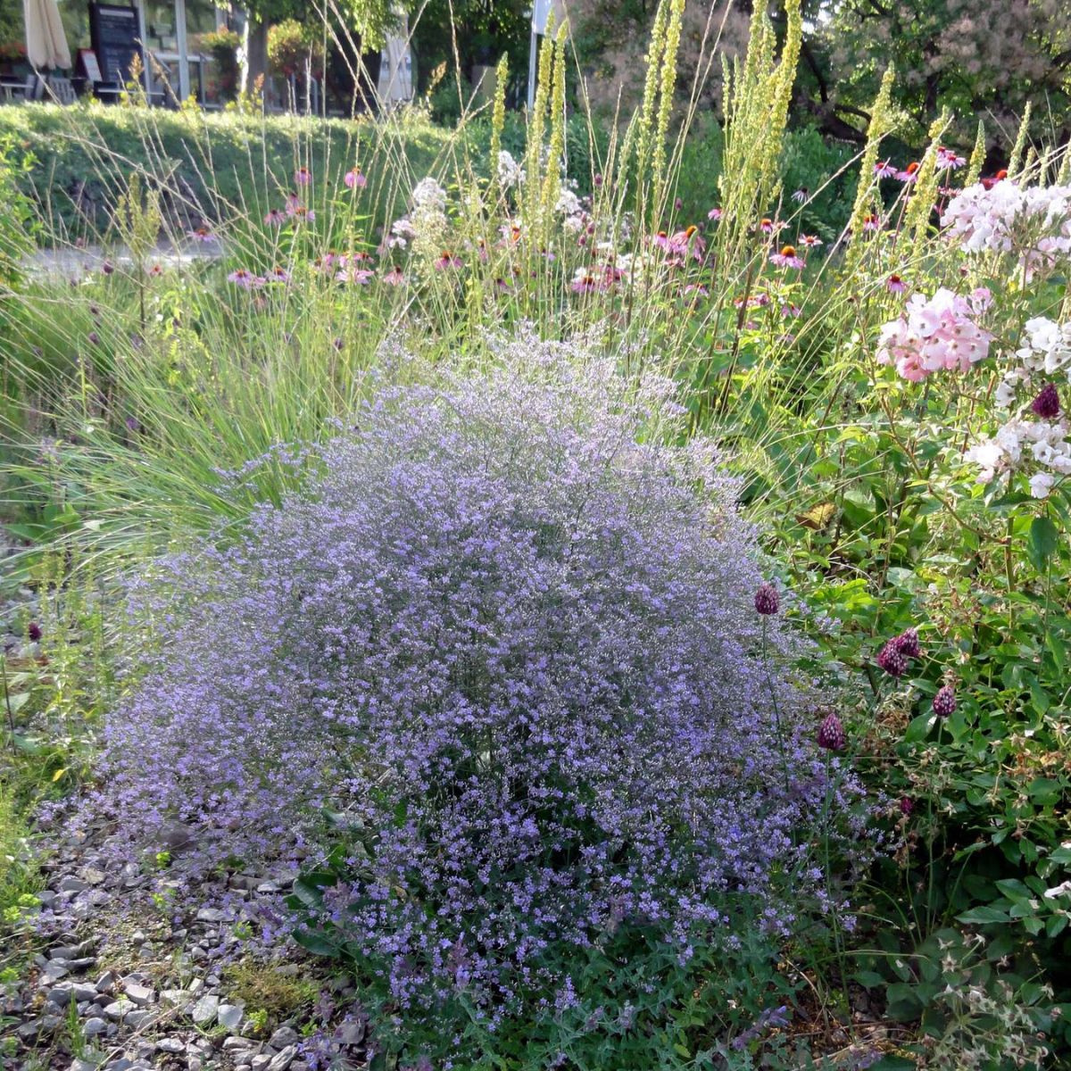 Bylina o fioletowo-niebieskich kwiatach, tworząca subtelną mgiełkę nad rozetami zielonych liści. Kwitnie od czerwca do sierpnia, osiągając 40-50 cm wysokości. Idealna na słoneczne rabaty, łąki kwietne i do suchych bukietów.