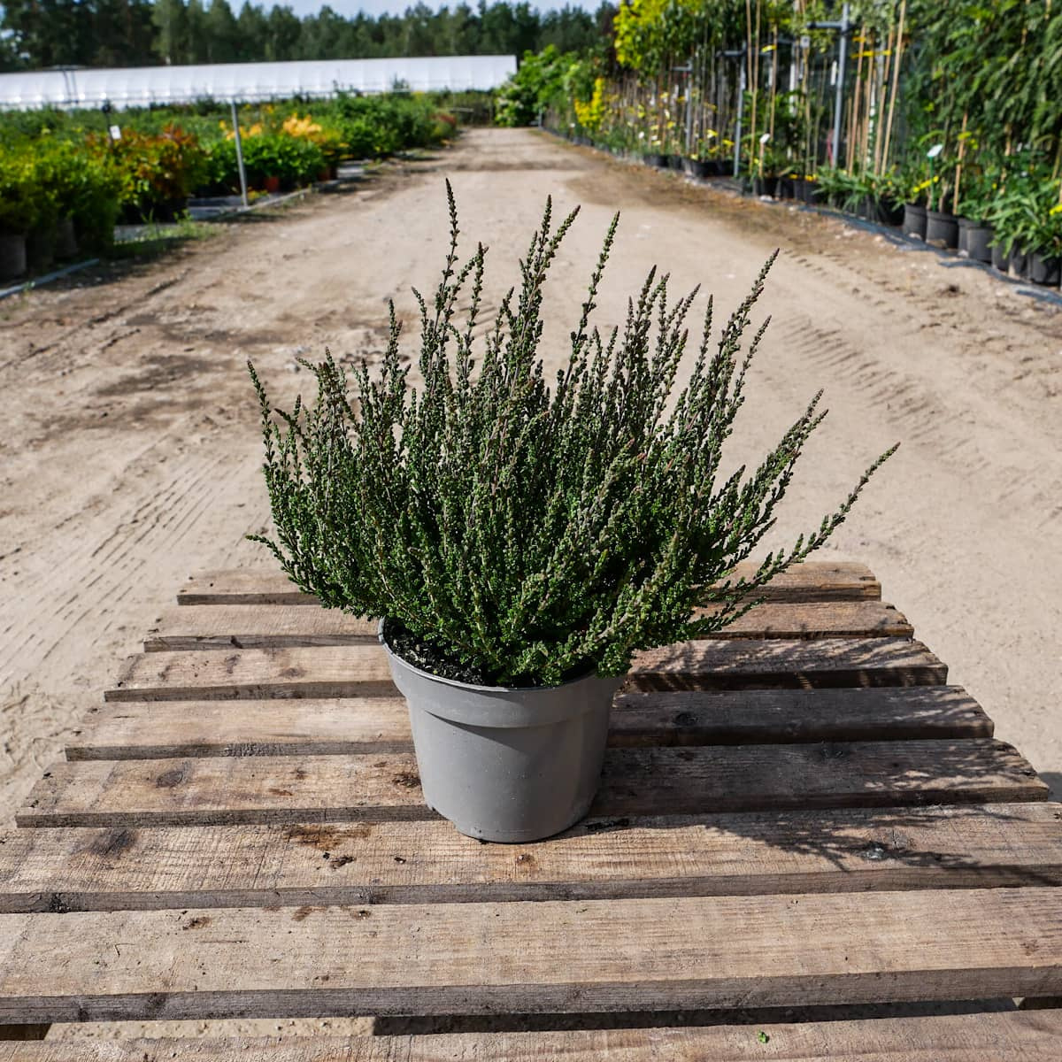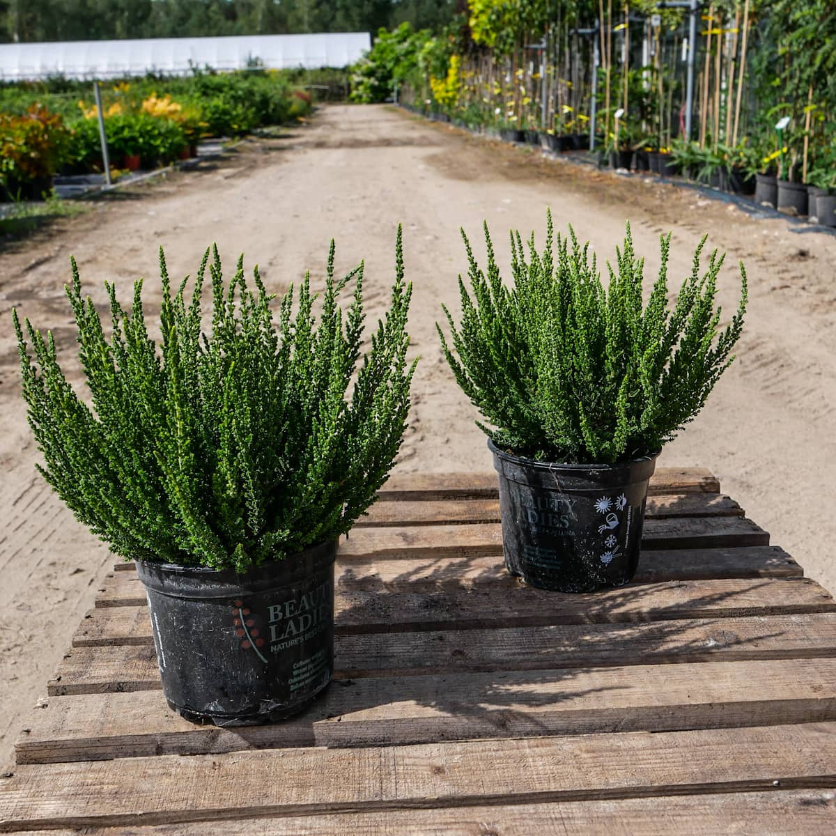 Prezentowane sadzonki wrzosów cechują się intensywnie fioletowymi kwiatami i świeżą, zieloną barwą liści, które kontrastują ze sobą, tworząc wyjątkowy efekt wizualny. Rośliny mają formę niskich, zimozielonych krzewinek, które osiągają do 30–40 cm wysokości, zachowując estetyczny wygląd nawet poza sezonem kwitnienia. Dzięki dużej jednorodności w zestawie idealnie nadają się do tworzenia jednolitych dywanów kwiatowych.
