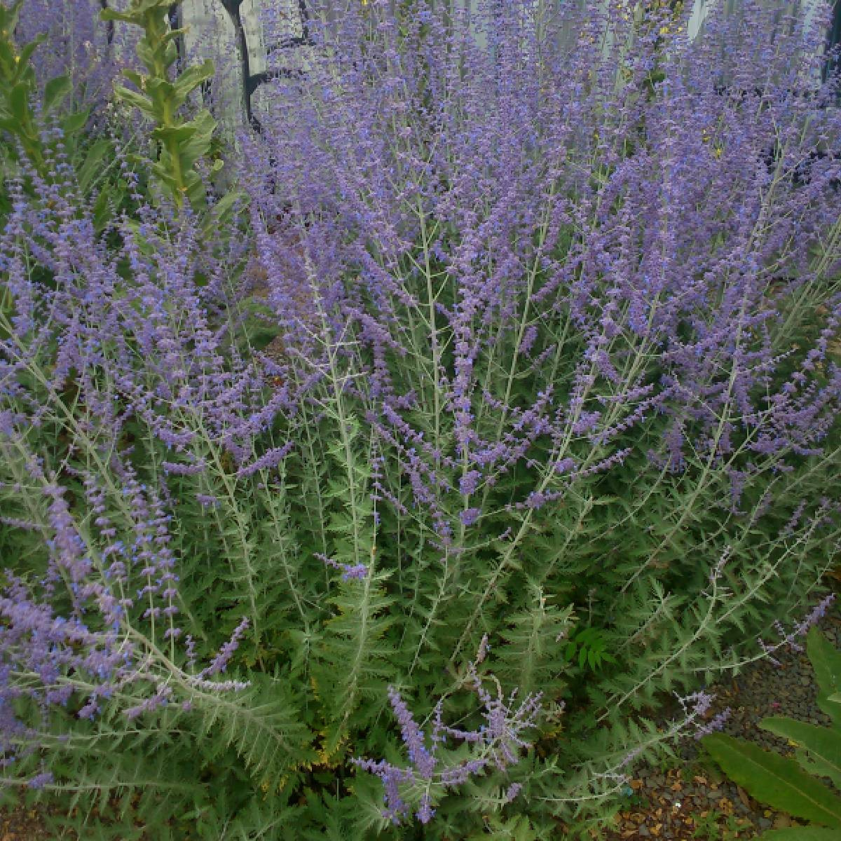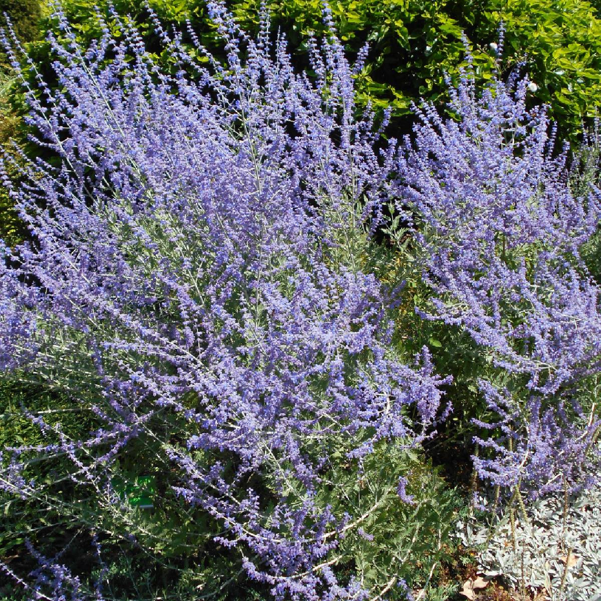 Perowskia Pięknotka ze Wschodu Miododajna to interesujący, rzadko spotykana bylina , która dorasta do około metra wysokości. Jest ceniona przede wszystkim za obfite kwitnienie, srebrzystą barwę pędów oraz intensywny zapach. Od połowy lipca do końca września na roślinie pojawiają się liczne, drobne, niebieskie kwiaty, które tworzą duże, rozgałęzione wiechy o długości do 50 cm. Kwiaty mają wzniesiony pokrój, a cała roślina tworzy luźne, ażurowe kępy, które po kwitnieniu wciąż zachwycają swoim srebrzystym wyglądem, utrzymując się aż do zimy.