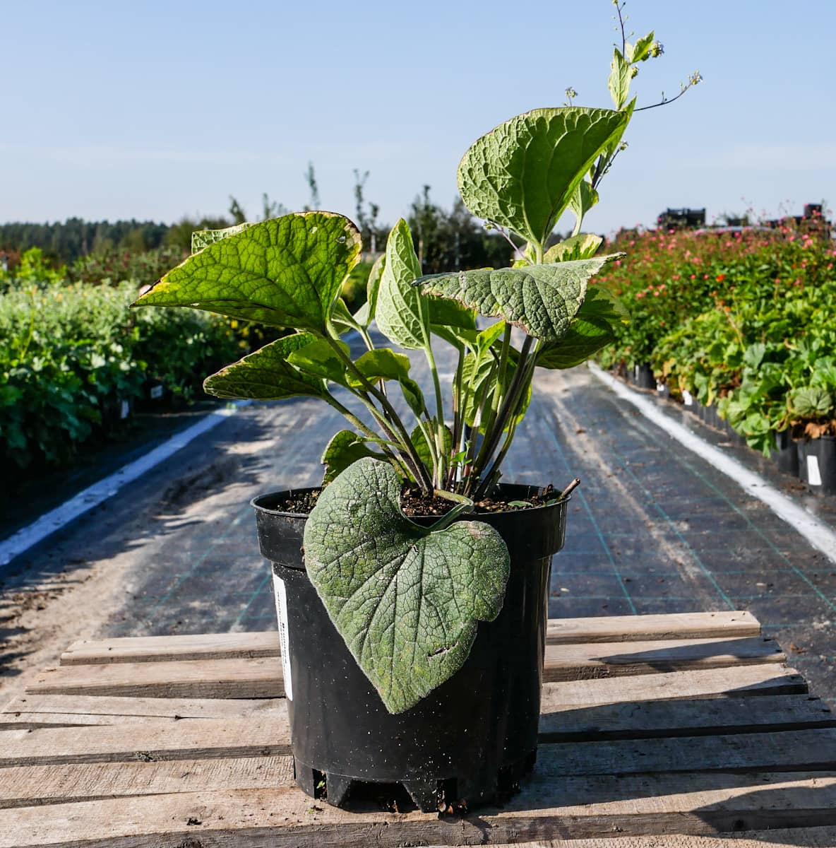 Brunnera wielkolistna to wieloletnia bylina pochodząca z Kaukazu, często nazywana kaukaską niezapominajką. Tworzy gęste kępy, dorastając do 30–40 cm wysokości i 60 cm szerokości. Jej sercowate, jasnozielone liście mają dekoracyjne kremowe obrzeżenie. Wiosną pojawiają się drobne, niebieskie kwiaty przypominające niezapominajki, które dodają uroku cienistym rabatom.